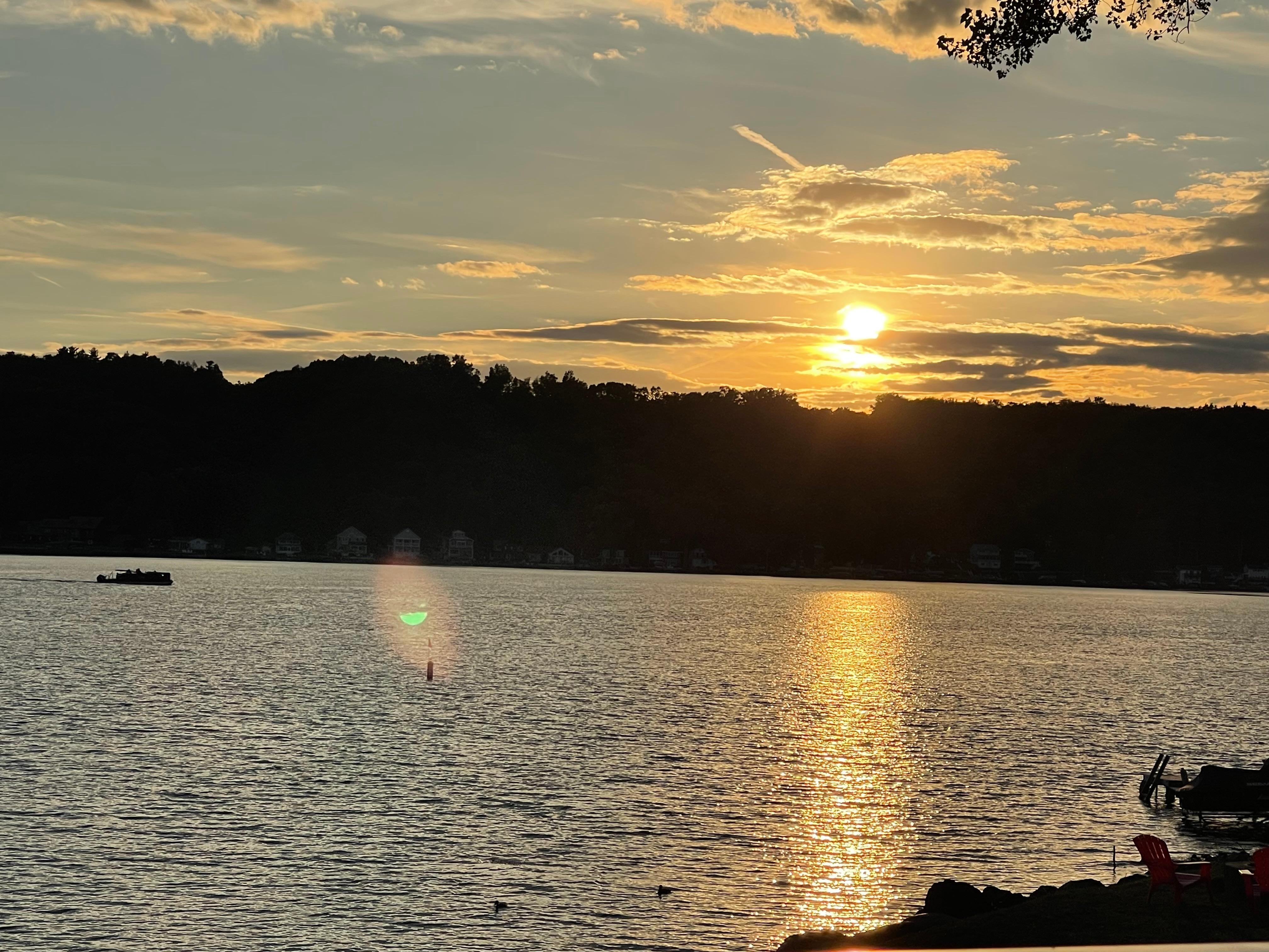 Immerse yourself in lakeside pleasures with the ideal 160' beach, inviting you to swim off the dock or relax by the fire pit on the shale beach. For additional fun, a small shed by the beach is stocked with life vests, rafts, and lawn games, ensuring endless entertainment for everyone.