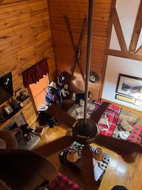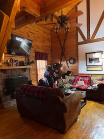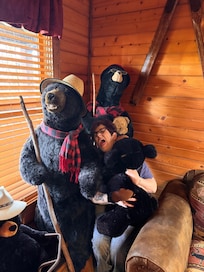This adorable bear-fun-filled cozy log cabin is ONE level 2 bedroom, 2 bath log cabin.