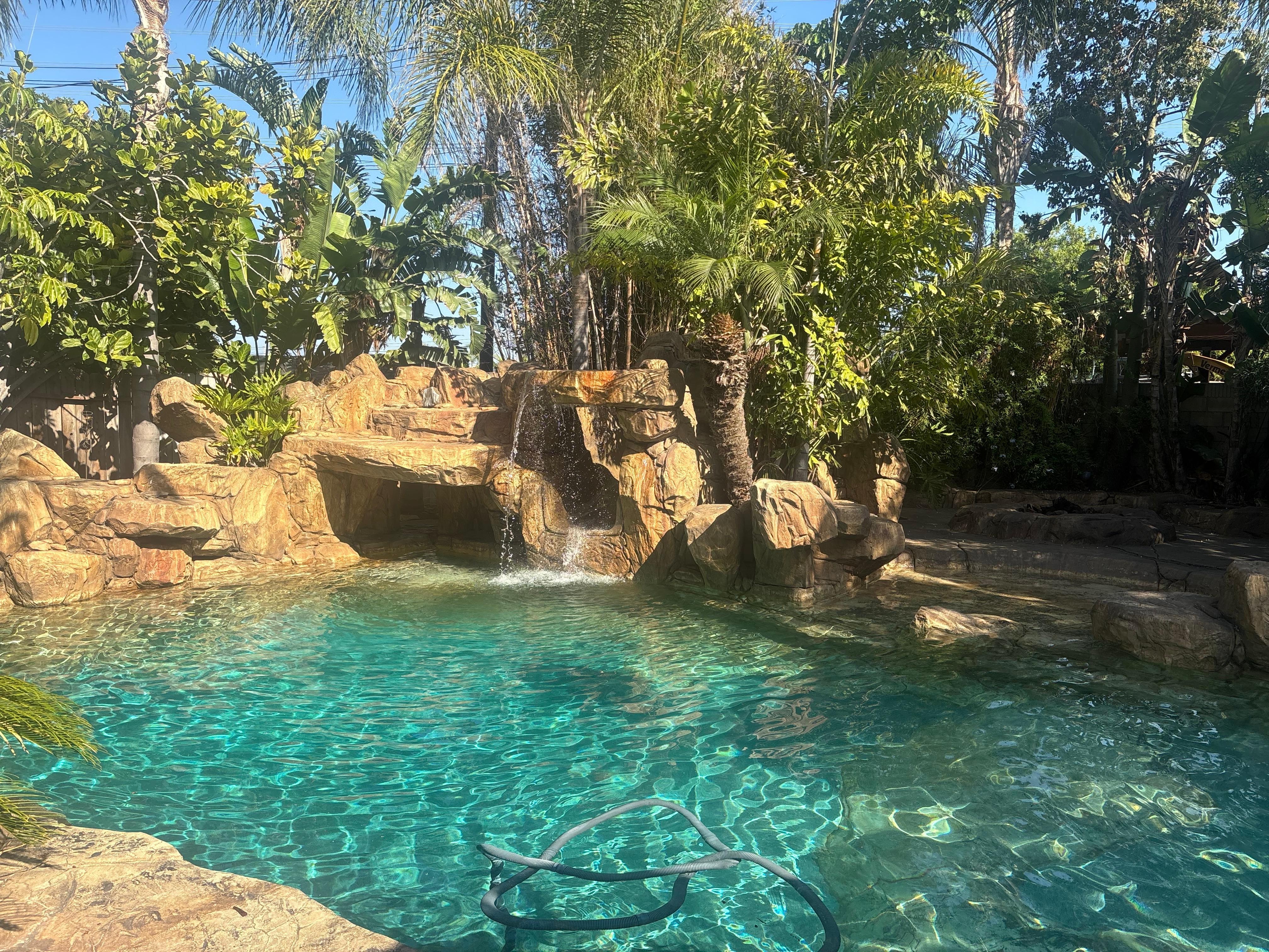 Come home to your own tropical paradise in the heart of OC near Disneyland and other SoCal theme parks. One of a kind lush backyard with majestic rock pool and spa, waterfalls, large pool slide, built in fire pit, Bali Hut, and more. You wont get enough of this paradise. Enjoy BBQing and dining on the expansive patio or have it with a round of mini-golf and ping pong. Indoors enjoy the big screen TV with chase lounge sofas. Plenty to do with many board games and DVDs. You'll be back for more!