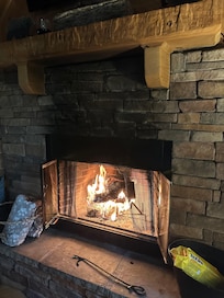 Lovely cabin with roaring fire after a few wet days at the sloped