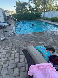 Poolside Furniture: 4 Lounge chairs and shade umbrella overlooking the pool. Table w/ 8 chairs. Outside Sitting area; total areas seat up to 18.