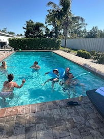 Outdoor table w/ 8 chairs and Sitting Area by the Pool.