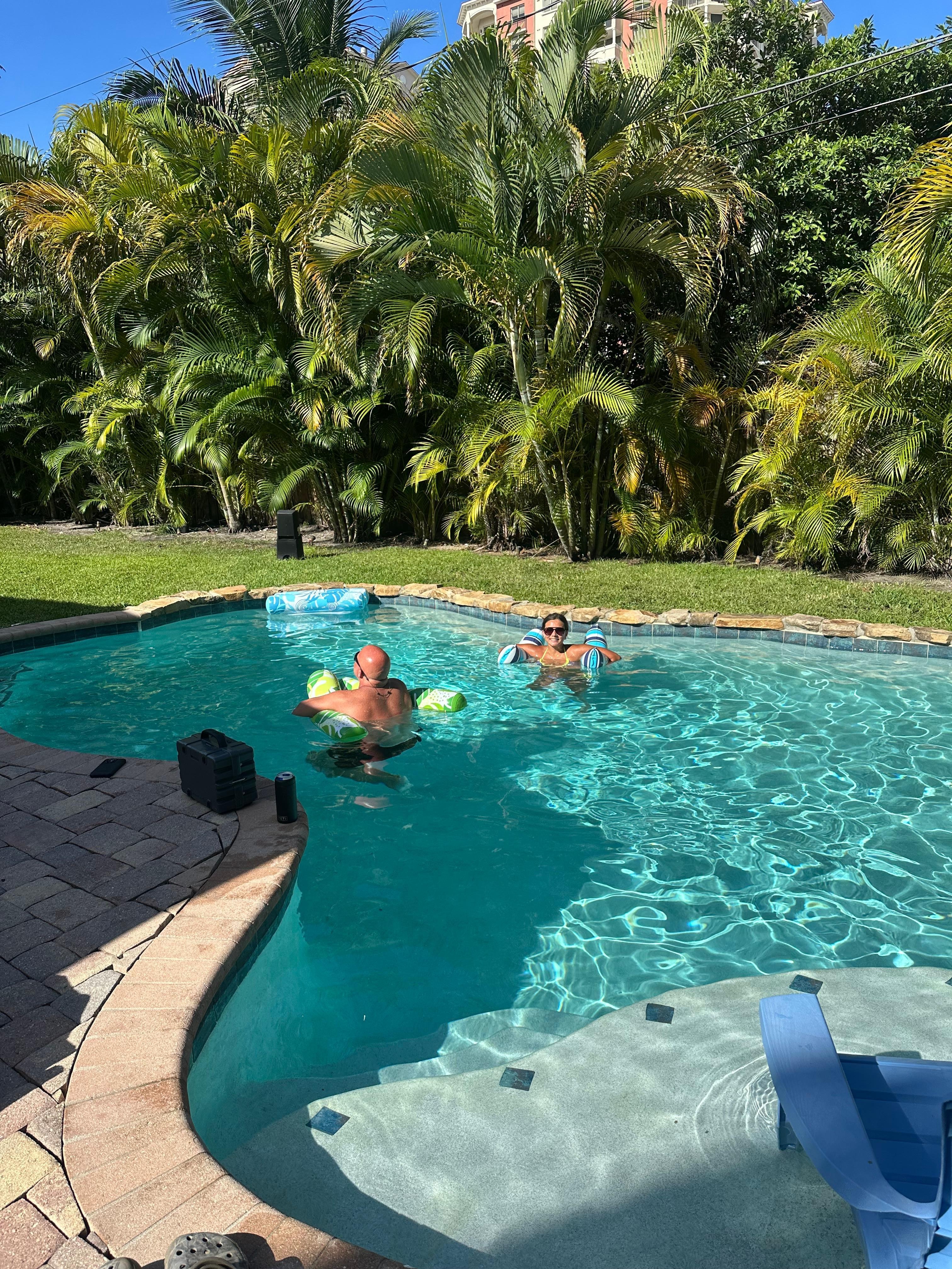 *** HOUSE NOISE RULES: Please know that you are coming into a high end, calm, family oriented, noise sensitive beachie neighborhood where absolutely NO parties, NO gatherings or get togethers of any type with anyone outside the booking are allowed. The home is ONLY for the guests in the reservation, no-one else. Also, NO DJ’s, loud music, big speakers or noises allowed either. Broward County and the City of Ft. Lauderdale are very strict and have passed a new Noise Ordinance Curfew for all Vacation Rentals from 9pm till 9am. This means that after 9pm NO music is to be played in the back yard or pool area and any one outside must keep all conversations to a cell phone level to ensure we don’t disturb our neighbors whom understandably have work or kids that go to school or events the next day. Finally know that we do have security cameras on premises video/audio recording 24/7 for the safety of our home and the tampering of any security system is considered a felony offense in the State of Florida and will also result in the termination of your reservation. By reserving our home you are agreeing to these terms. 1 camera is facing the front of the house and the other facing the pool area
