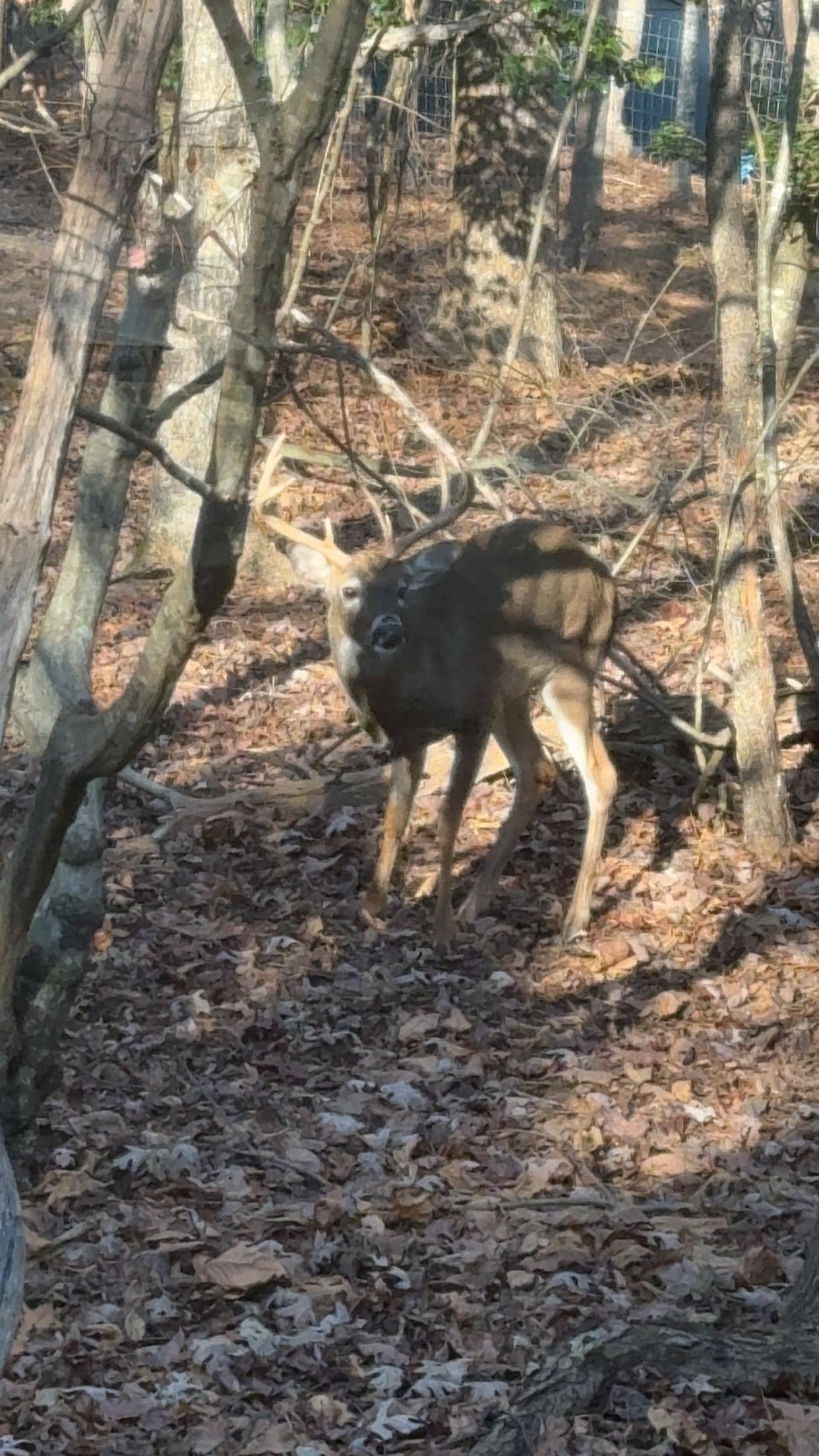 Let's head outside. The Knotty Pine has a massive porch that wraps 3/4 of the way around the house. Our property is nestled in a deer sanctuary, so you will likely see plenty of bucks, does and little fawns during your stay.