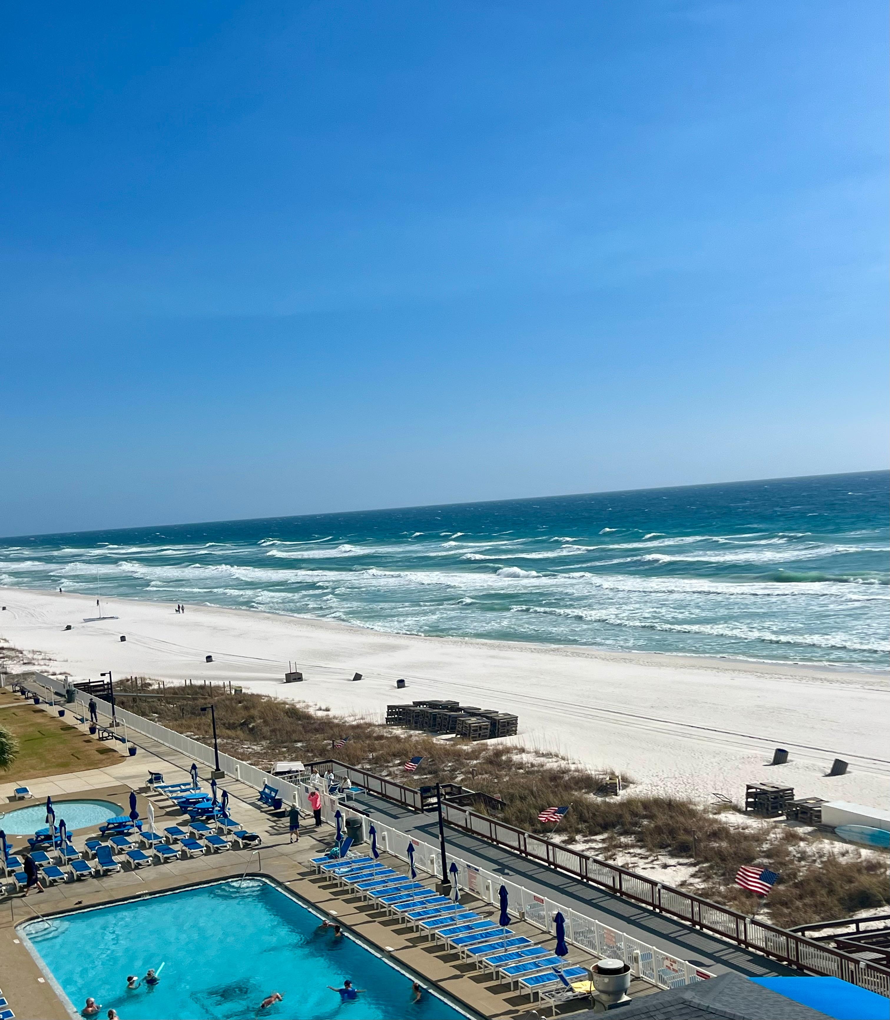 Regency Towers Resort is a gated property, with 2 pools (seasonally heated), a kiddie pool, Jacuzzi/hot tub, large exercise room, and billiards room. There is a wonderful Tiki bar between the pools with a full menu, and daily entertainment during summer months. Parking is available within the gated property, and an overflow lot directly across the street can be used for RV/boat parking. Beach chairs/umbrellas, jet skis, and parasailing rentals available on beach in front of condo.