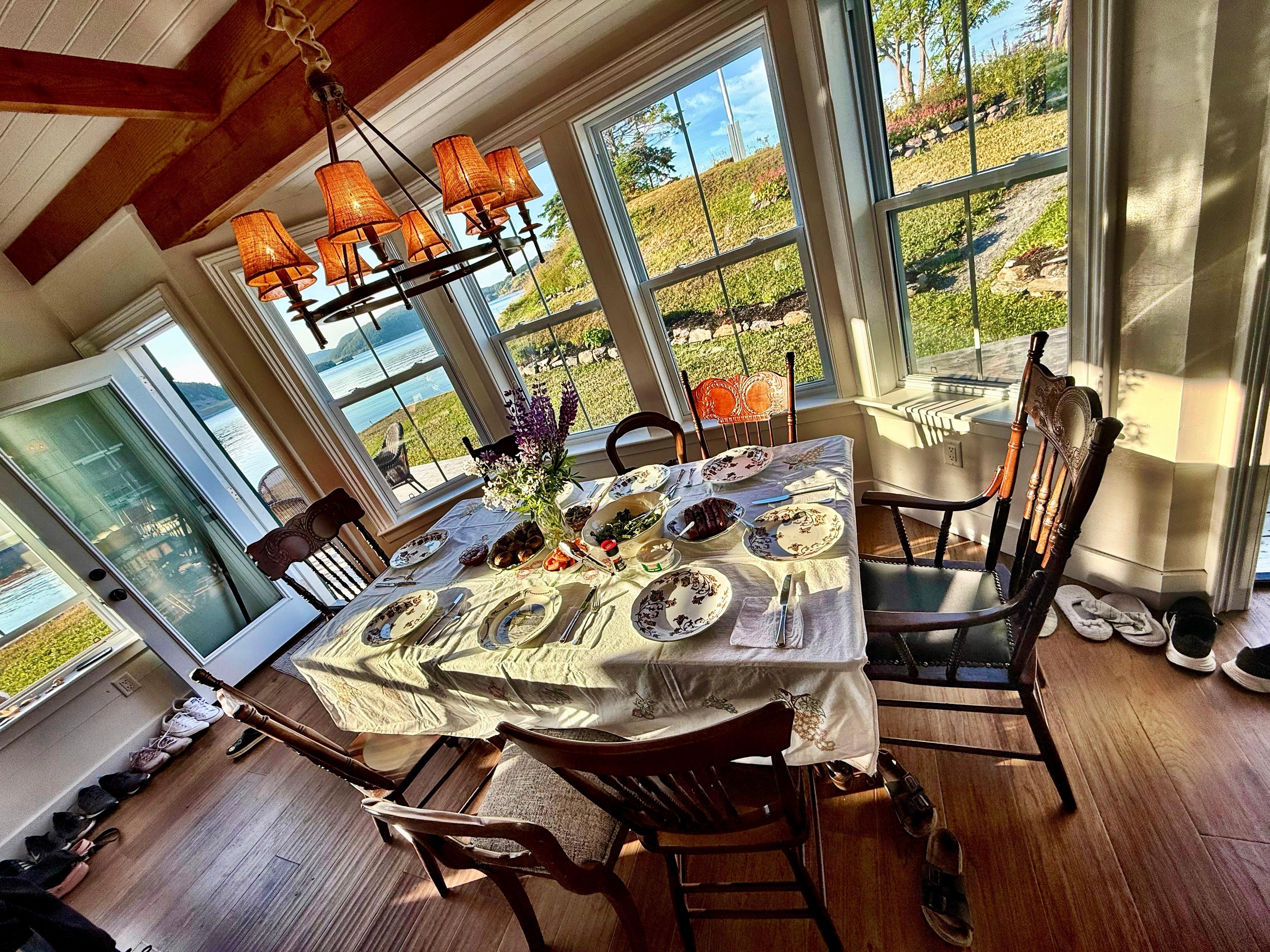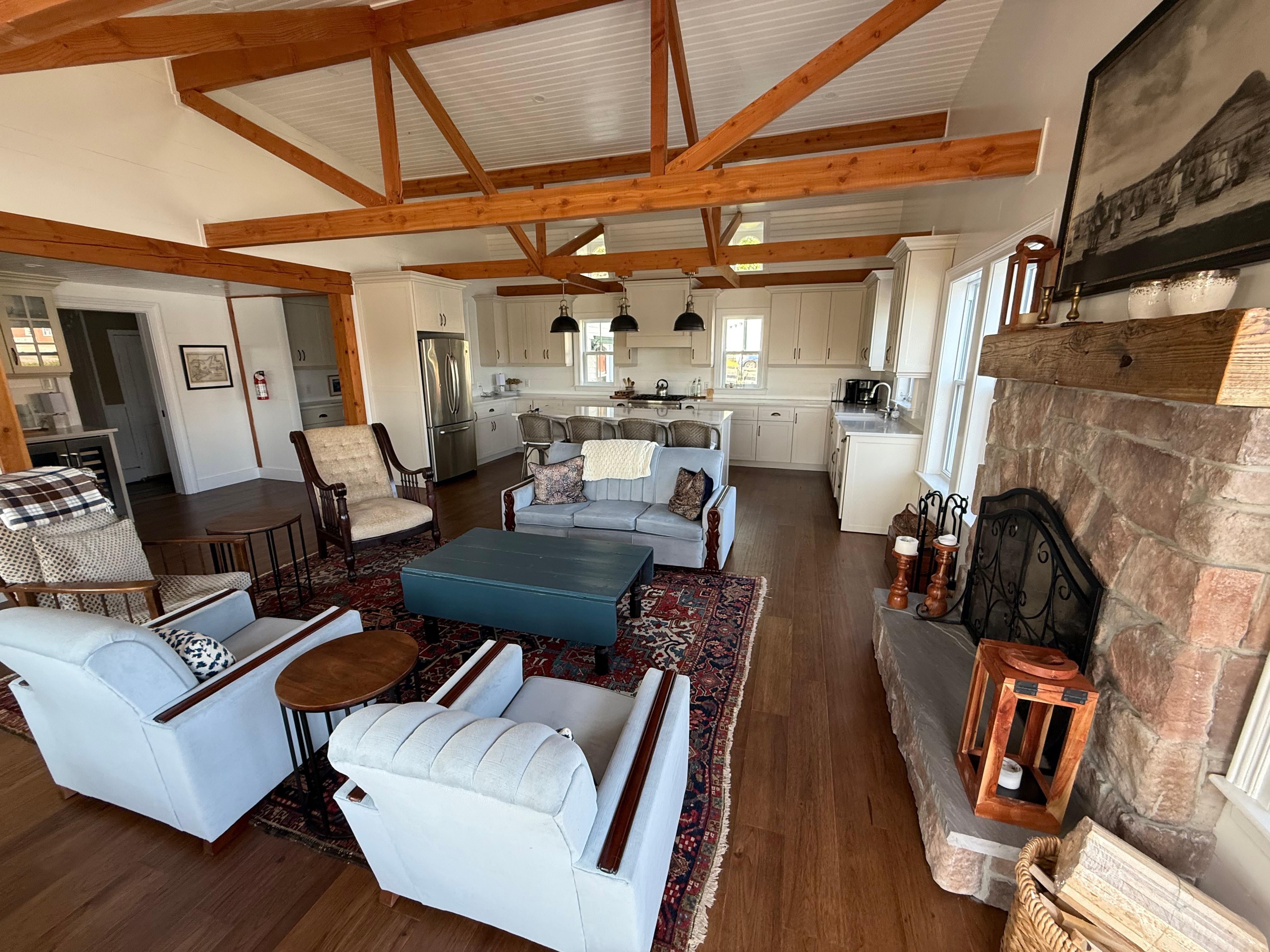 Garland House has 12 foot ceilings and large rooms. On the main floor there is a brand new (2021) Chefs Kitchen open to a sitting room with fireplace and a dining table for 8. The new sitting area with couch and chairs overlook the harbor and beach. Additionally, there is a separate Living Room with a couch and chairs providing comfortable seating to watch the flat screen TV with extensive cable service. There is WIFI throughout.