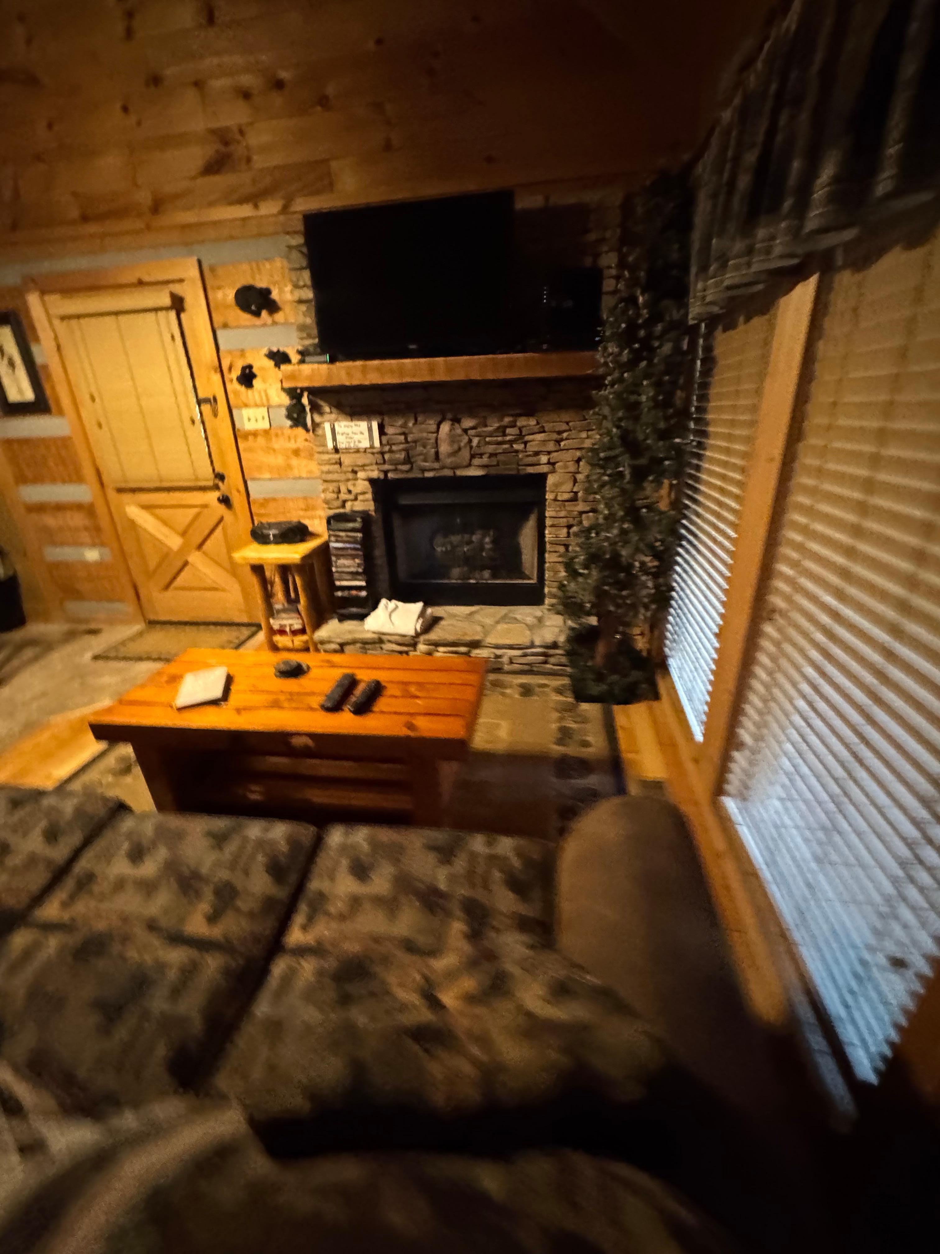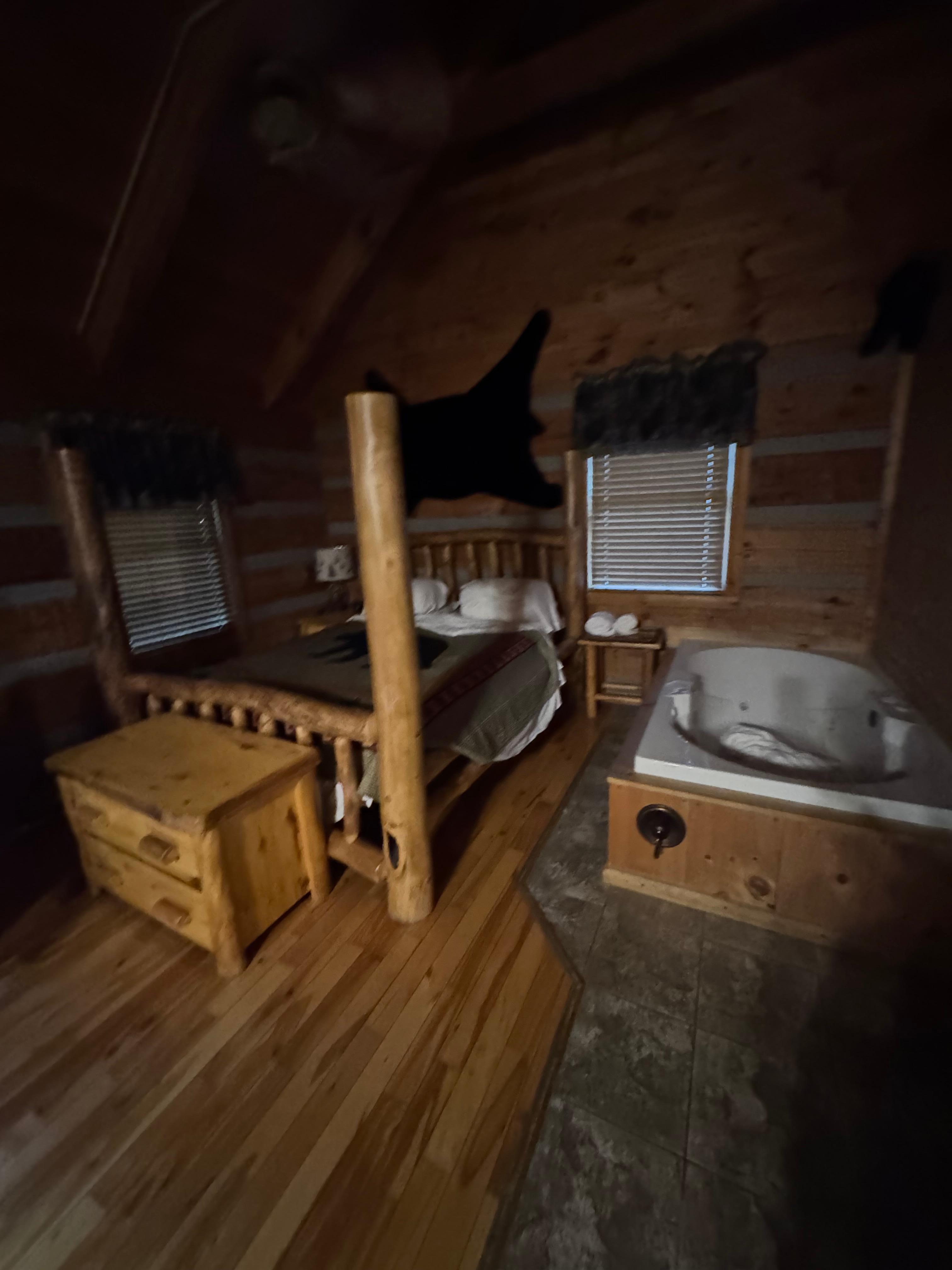 Psalm 91:11 is a beautiful Studio Log Cabin. Perfect for a Romantic stay for 2. It is also great for small families. It has a pull out sleeper sofa that is wonderful by the fire. Psalm 91:11 has 1 full bath with a small closet for hanging clothes. A wrap around deck with Log swing, Rockers and a private Hot Tub. There is a charcoal grill located at the side of the cabin for your afternoon cook outs. It also has a large indoor Jacuzzi Tub.