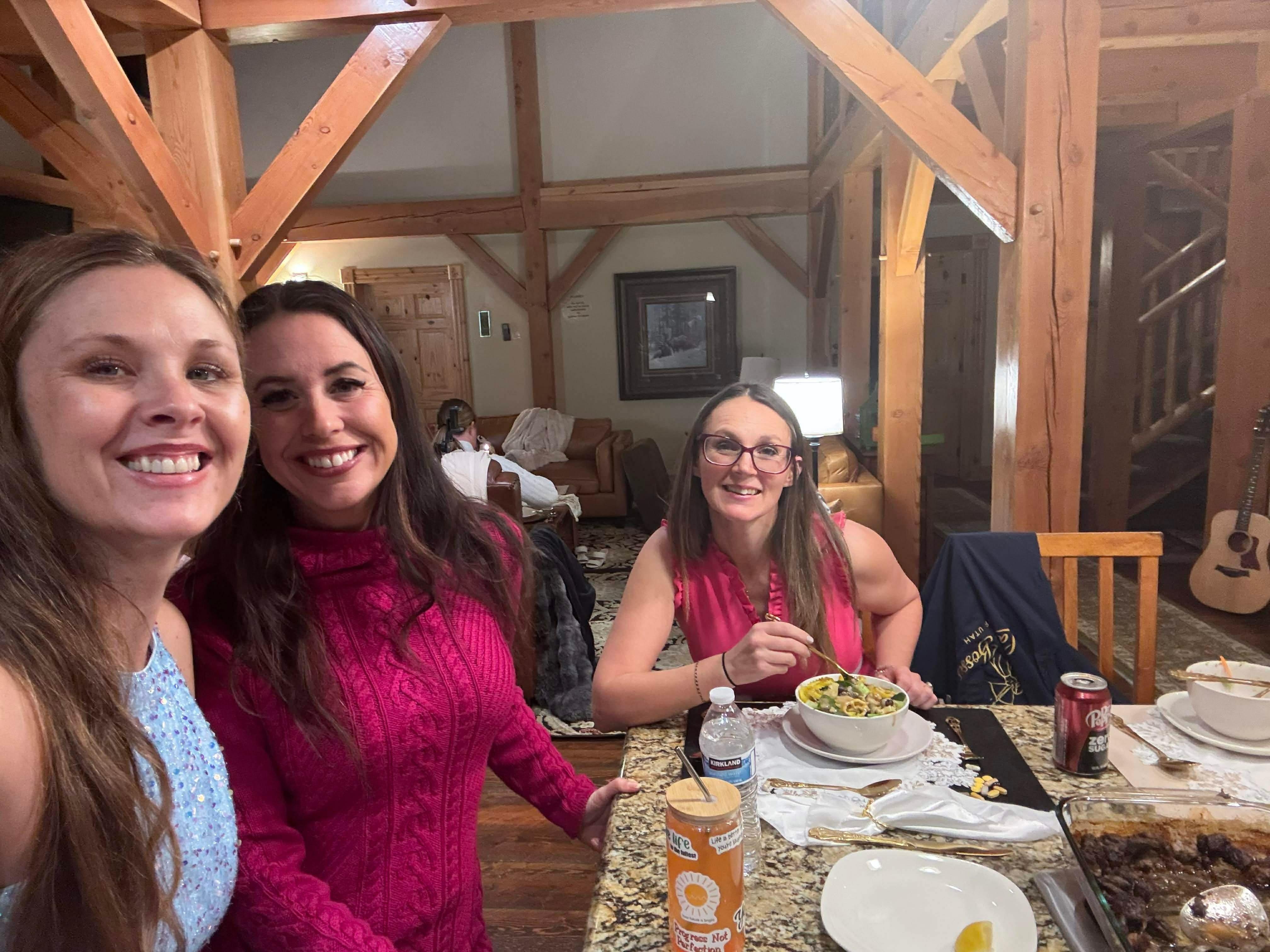 Step inside this beautifully crafted cabin and enjoy the warmth and coziness of a true timber frame home. The open-concept living and dining areas boast large windows that frame panoramic views of the mountains, creating the perfect atmosphere to relax after a day of adventure. The well-equipped kitchen, featuring a gas burner stove, side-by-side fridge, and all the utensils and cookware you need, is perfect for preparing hearty meals. Whether it's breakfast on the island or a family dinner around the expandable dining table, this space has everything to accommodate your group.