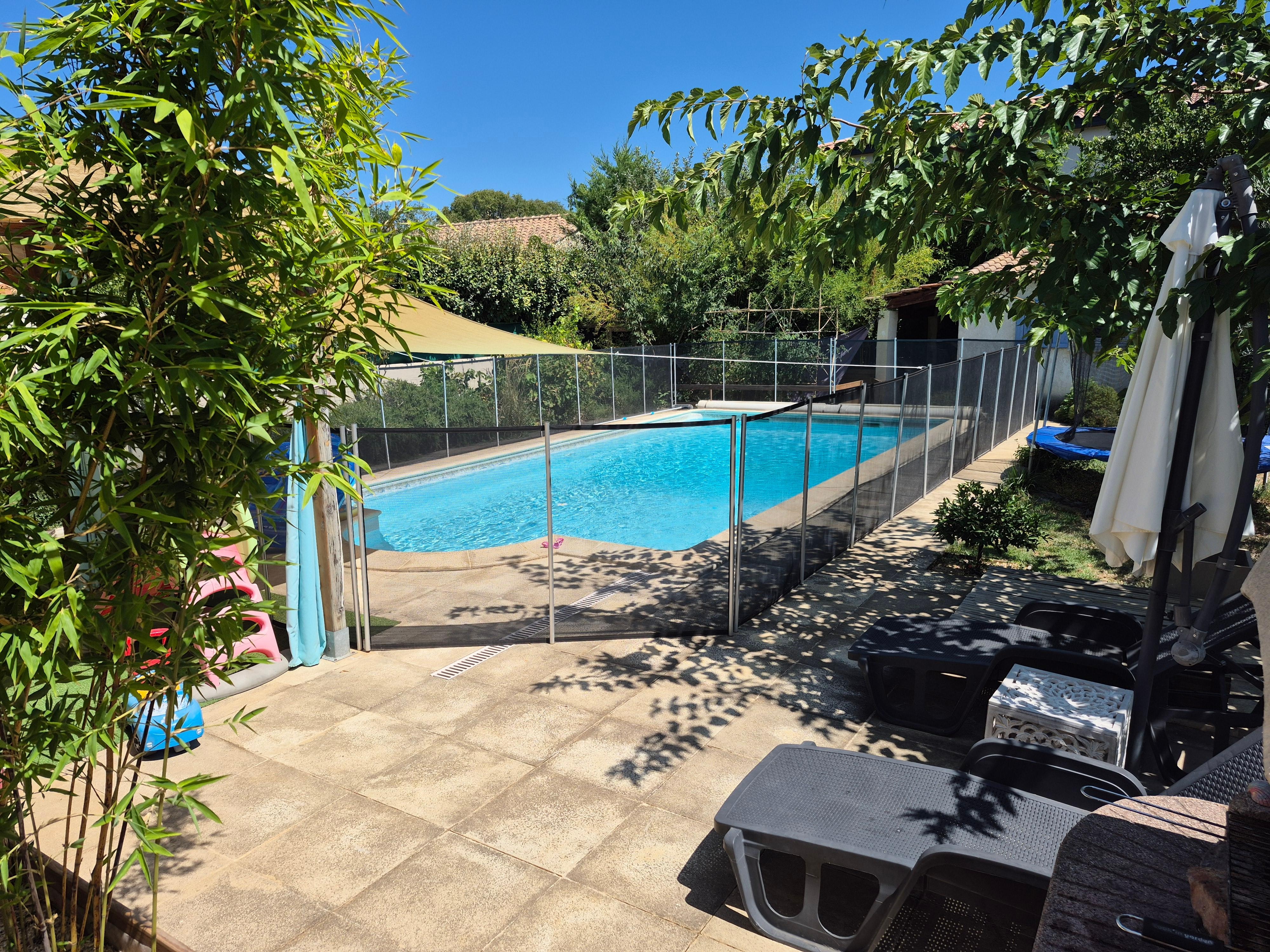 - Secure swimming pool with barrier for children