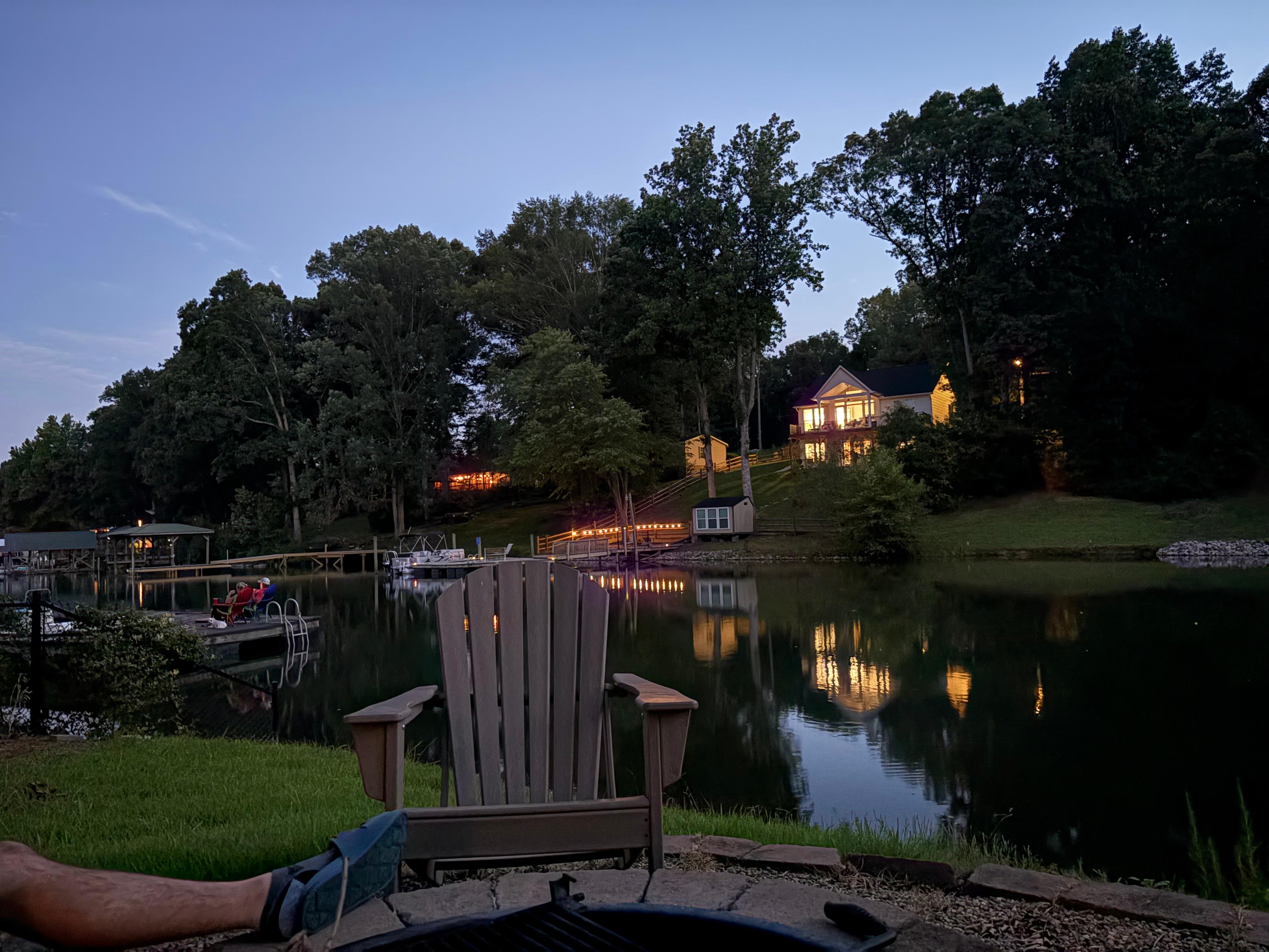 The house itself has the 3 bedrooms, a living room kitchen and dining in a big great room concept (no walls between them). The kitchen had the basic necessary furnishings plus there were come condiments in the refrigerator (we added to that pile). There is also an outdoor grill which we didn’t use. There is a fire pit by the water which we used and made s’mores one night. The backyard slopes steeply to the water and other than he hammock and fire pit, probably not a place to plan events. The Tv uses the spectrum cable app and the living room tv has appletv.