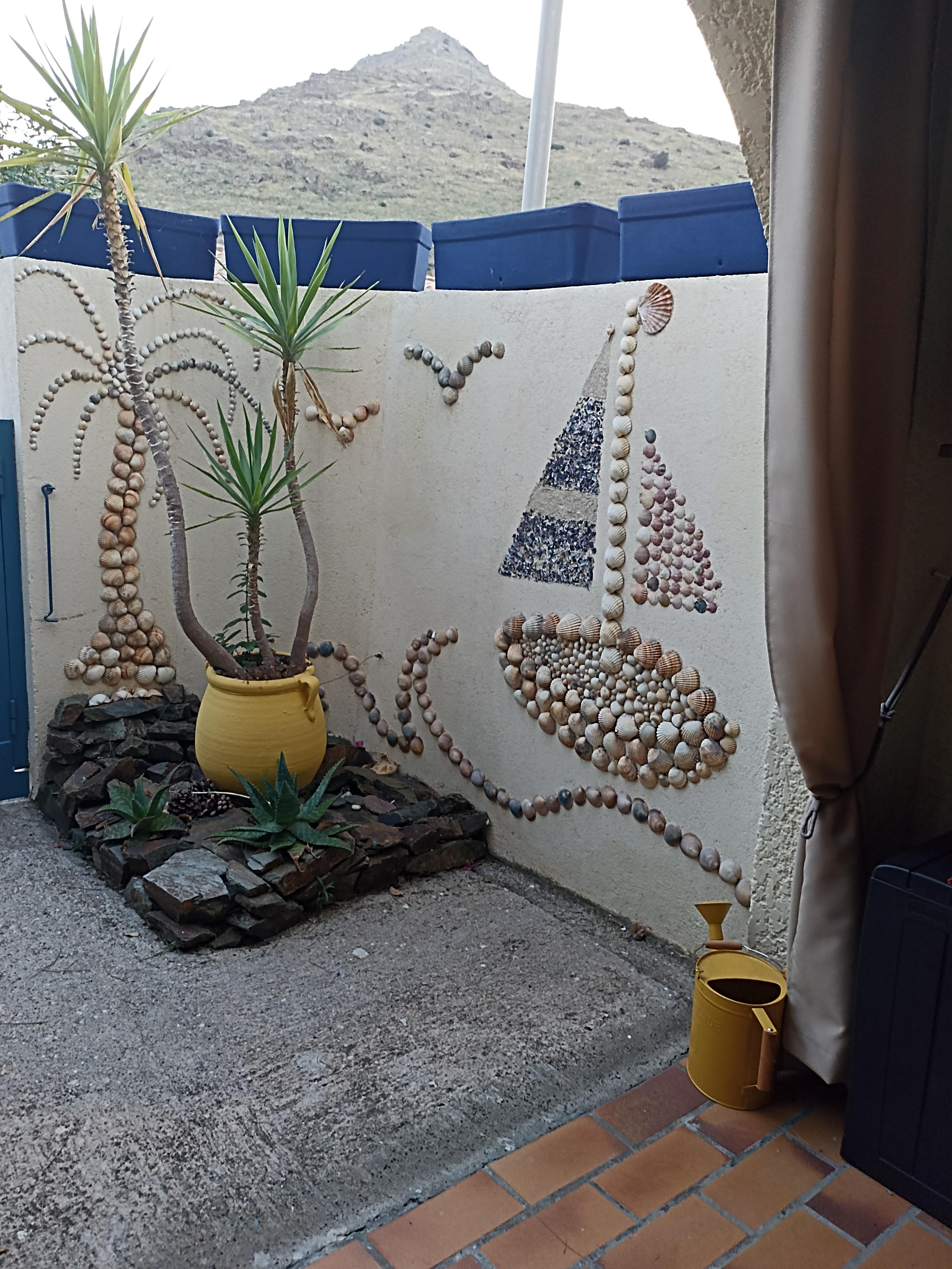 T2 37 m² in a protected cove, terrace, small garden, mountain view.