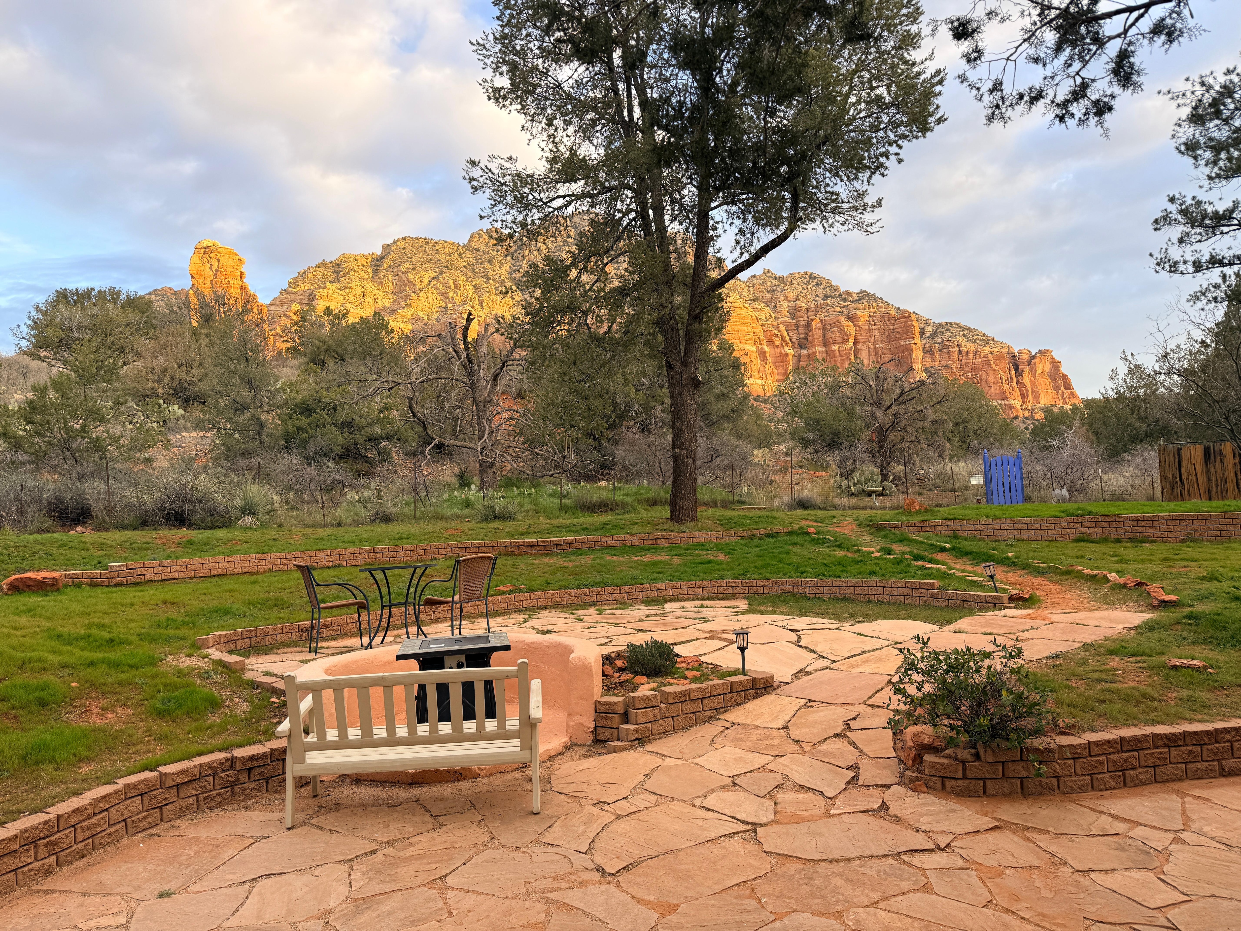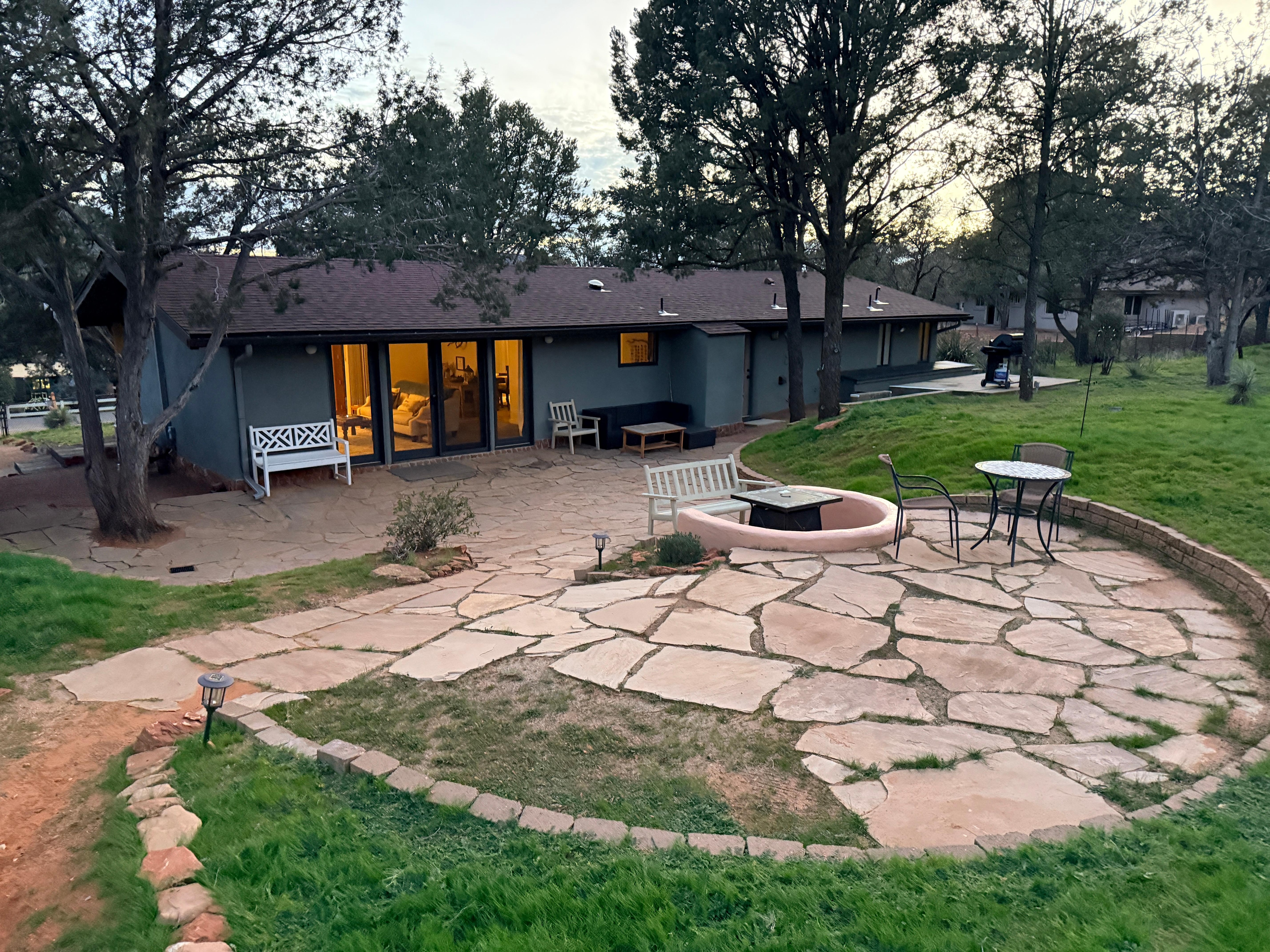 The expansive private back yard invites peaceful enjoyment of nature with a red rock backdrop. At night, enjoy star gazing while grilling up a delicious dinner or cozied up next to the firepit. During the day, follow your inner compass out onto the forestry land and explore to your heart’s content.