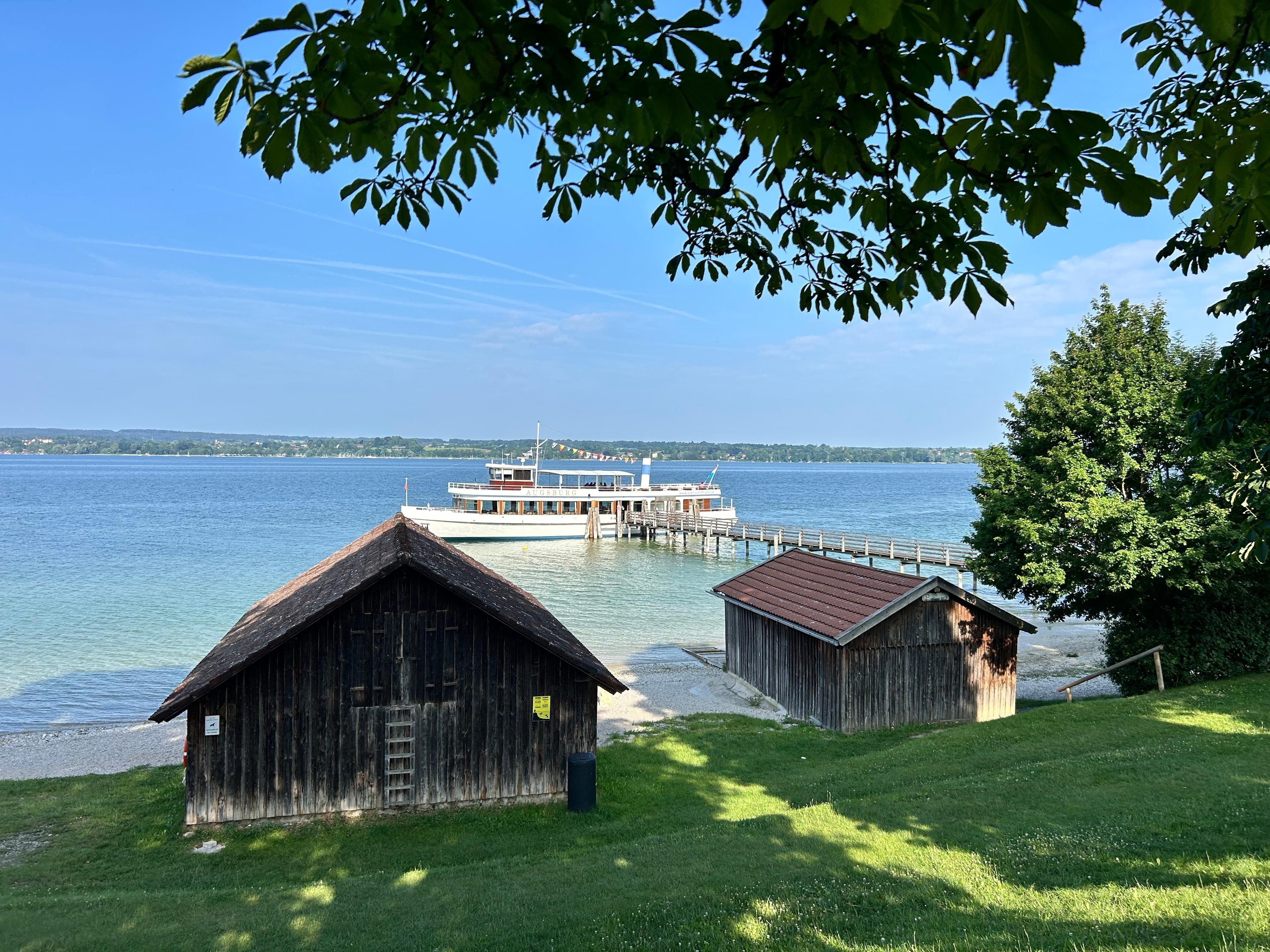 Our apartment is away from the village thoroughfare quiet and 100 meters from the beach (tip) is removed and the steamer pier of Breitbrunn. It can be reached without a major road to cross. From the jetty you have a wonderful view over the lake on the Dachstein Mountains and the Zugspitze in clear weather. For the pleasure of his kiosk at the jetty, which is also accessible on foot tavern starfish (50m), our "mom and pop" -Laden Unfriedsdorf (100m) and our chocolates makers with the best French croissants in Upper Bavaria, the chocolate sphere ensures (200m) ,