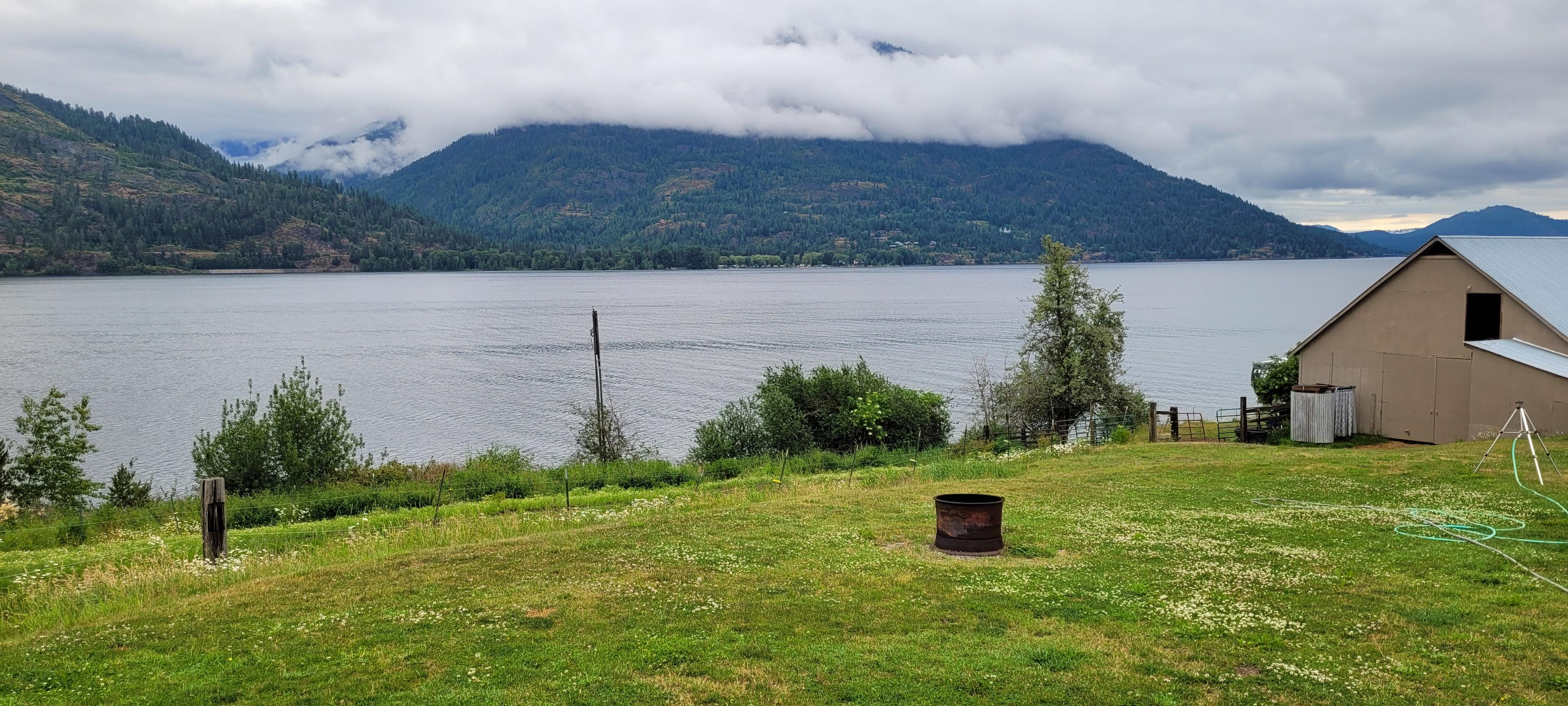 Sunnyside is a very desirable rural neighborhood on the north shore of Lake Pend Oreille east of Sandpoint. The cabin sits on a large site on the east side of the property, with east- and south-facing views of the lake.