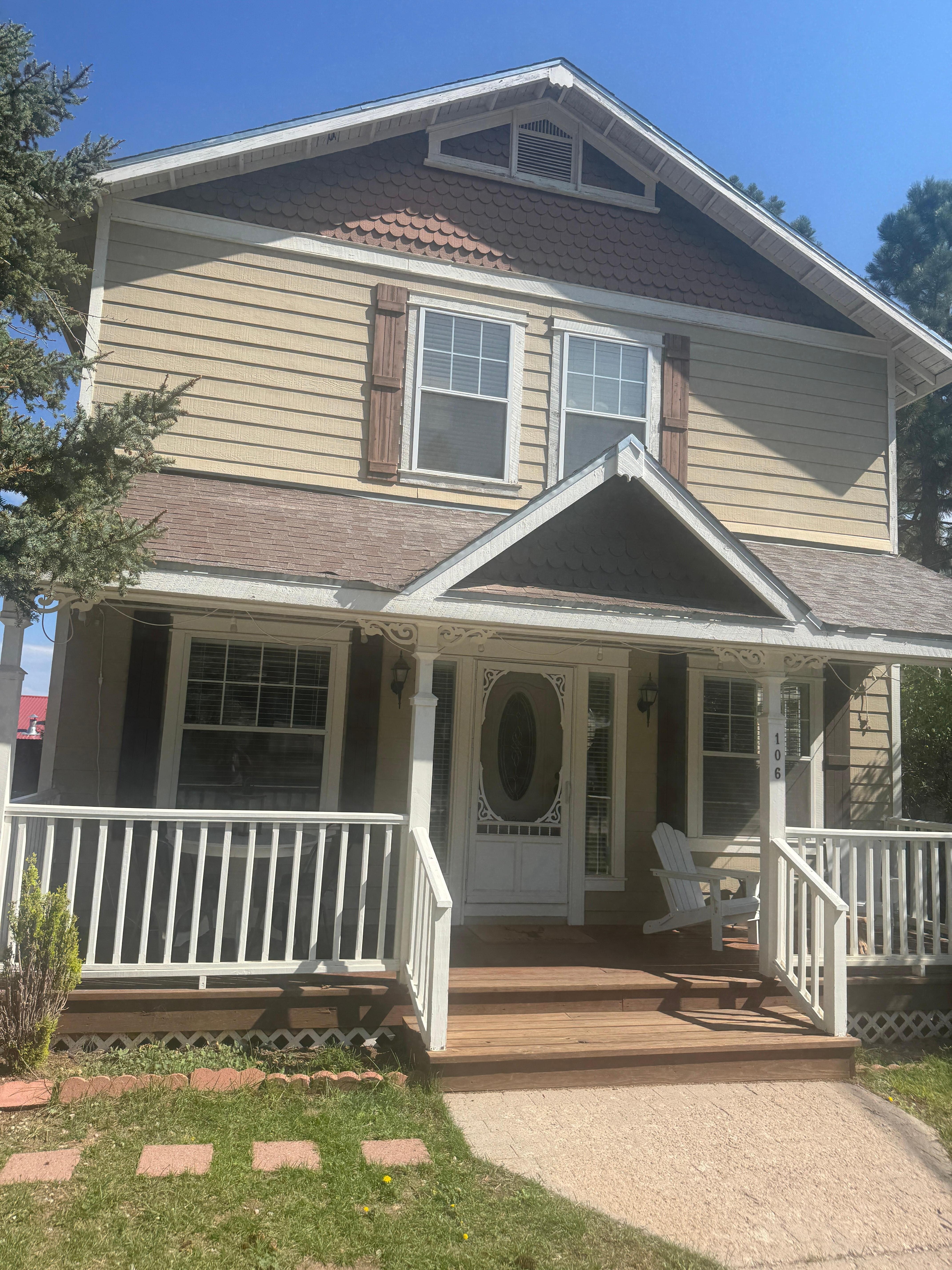 Beautiful farmhouse Victorian right in the heart of gorgeous Cloudcroft. This home features a perfect floor plan with the master bedroom and bath on the ground floor along with a half bathroom. The upstairs boasts four large bedrooms and a full bathroom. You will love the roomy kitchen and dining area for cooking, dining, or playing cards. You can easily walk to the golf course, quaint downtown shops and bars, or enjoy famous bbq nearly from your backyard! Enjoy coffee and cocktails on the porch watching deer and elk. You are sure to enjoy your stay at the “Chubby Chipmunk!”