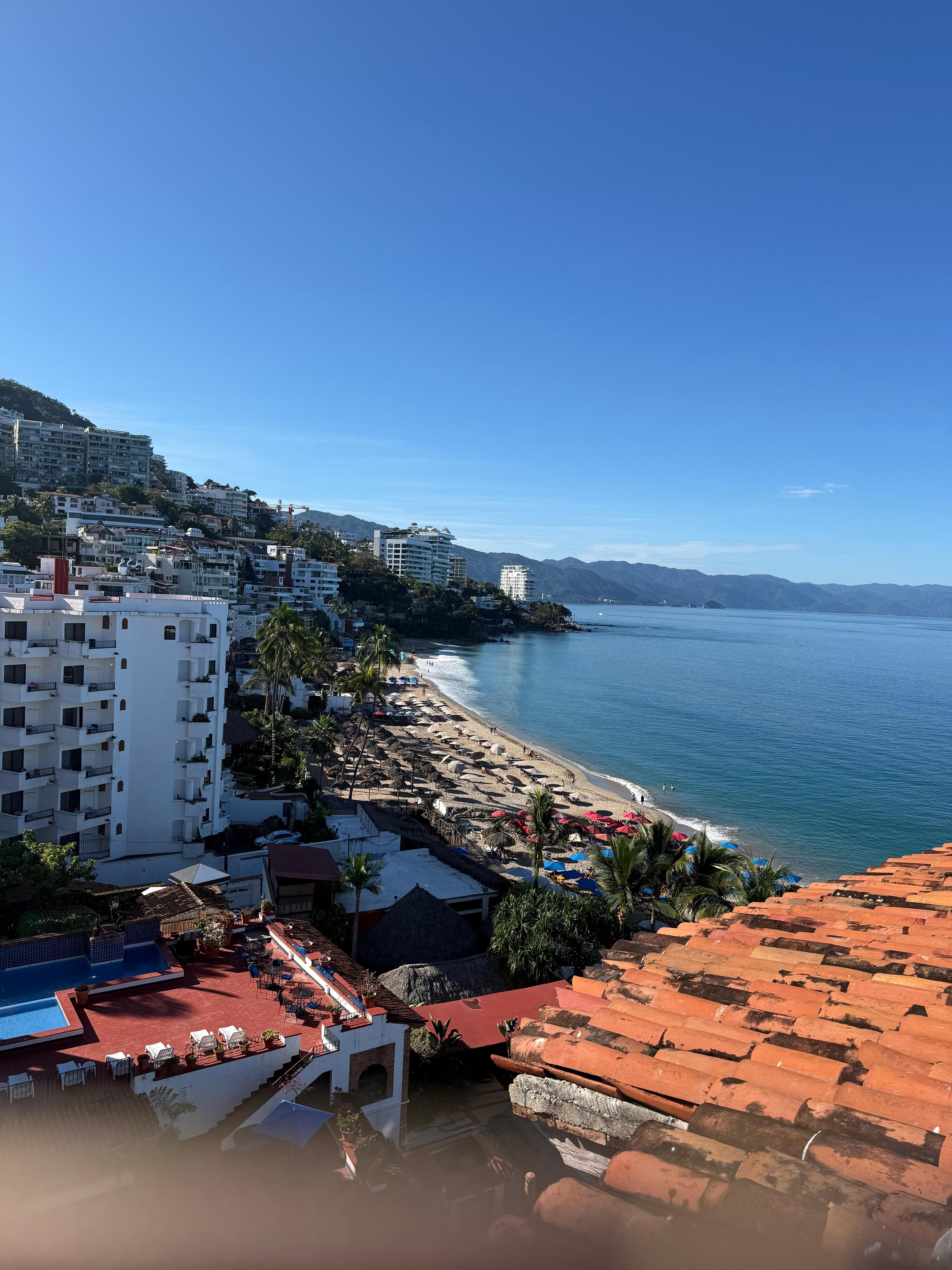 From the moment we walked into this light, airy, beautifully renovated condo and out onto its spacious balcony with direct views of the water and Los Muertos Beach, we knew we had found the perfect spot for our stay in Puerto Vallarta. Located in the same building as the beachfront La Palapa restaurant—a must for a romantic dinner on the water—and surrounded by an exciting variety of dining options, coffee shops, retail stores, and beach clubs, the condo could not be better situated. The owner’s pride in the home and attention to detail are evident in its thoughtful amenities, attractive furnishings, and excellent storage, as well as in its charming display of local artwork. All of those together make for a lovely, functional space with a cozy “home away from home” vibe. Be sure to take the elevator to the roof deck, where you can enjoy the sweeping views of the city or just chill out by the pool. And if you’re at all like us, you’ll be planning your return visit well before you leave.