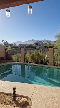 4 beds • 3 baths • pool • balcony • patio • 2 office spaces • garage • kitchen • living room • family room • dining area • laundry room• 2 smart TVs• bedroom TV • backyard • mountain views