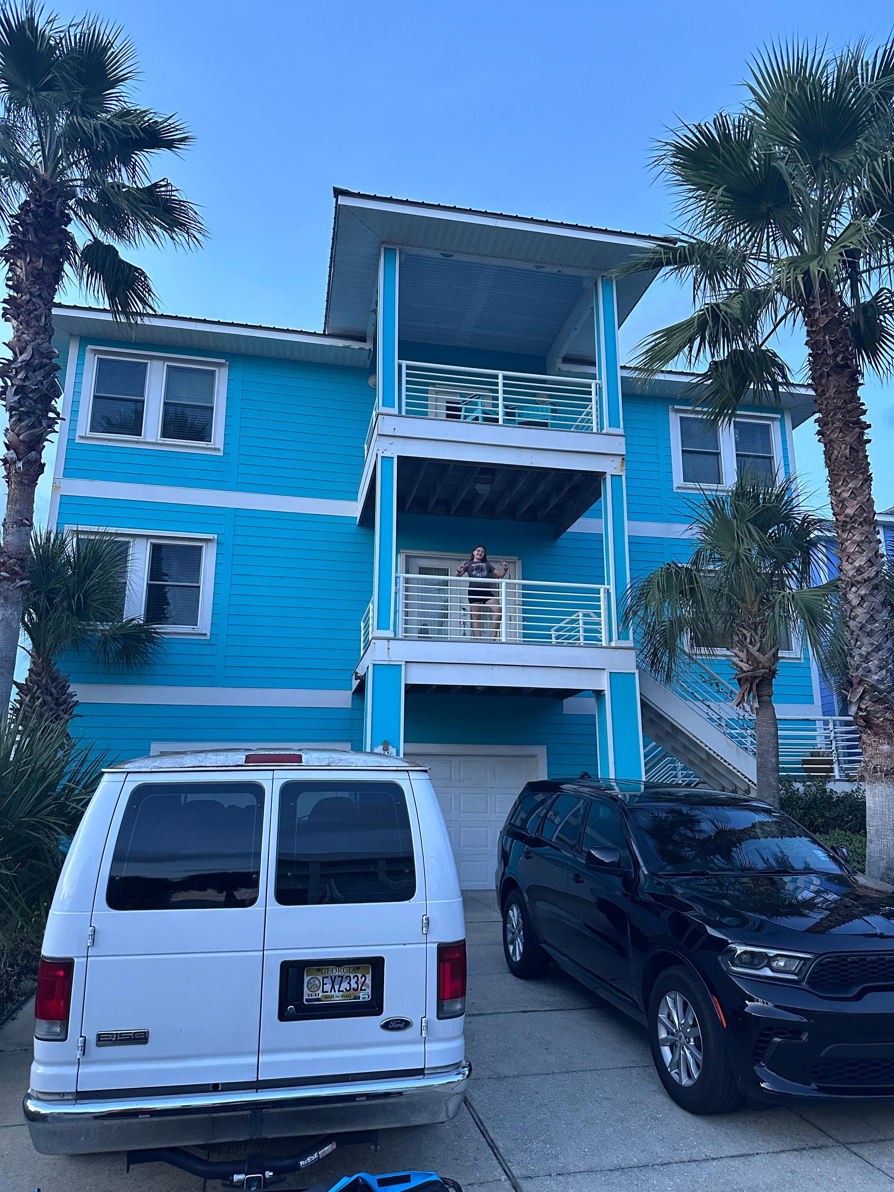 Designed with large groups in mind, this multi-level beach vacation rental exudes a laid-back coastal charm and vibrant energy, meticulously crafted to deliver the ultimate getaway experience. Each level features spacious balconies furnished with ample seating, offering ideal spots for relaxation and soaking in the coastal ambiance.