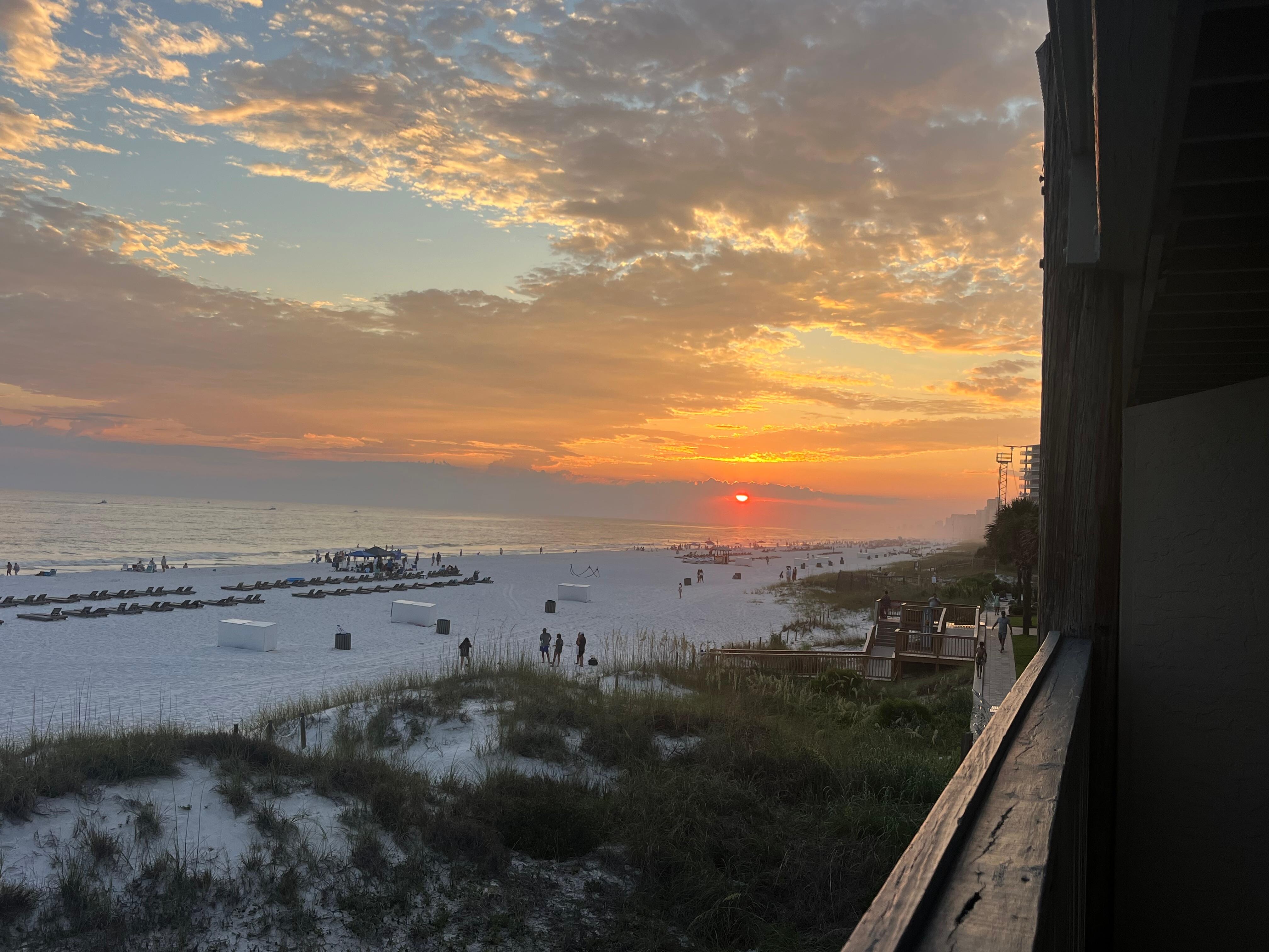 Lovely balcony views of the sunset and the beach. I loved you could rent chairs and umbrellas from the beach service. The complex pool was convenient too. The rental was clean and well maintained. Owners had excellent communication. We encountered no problems with the property during our stay.