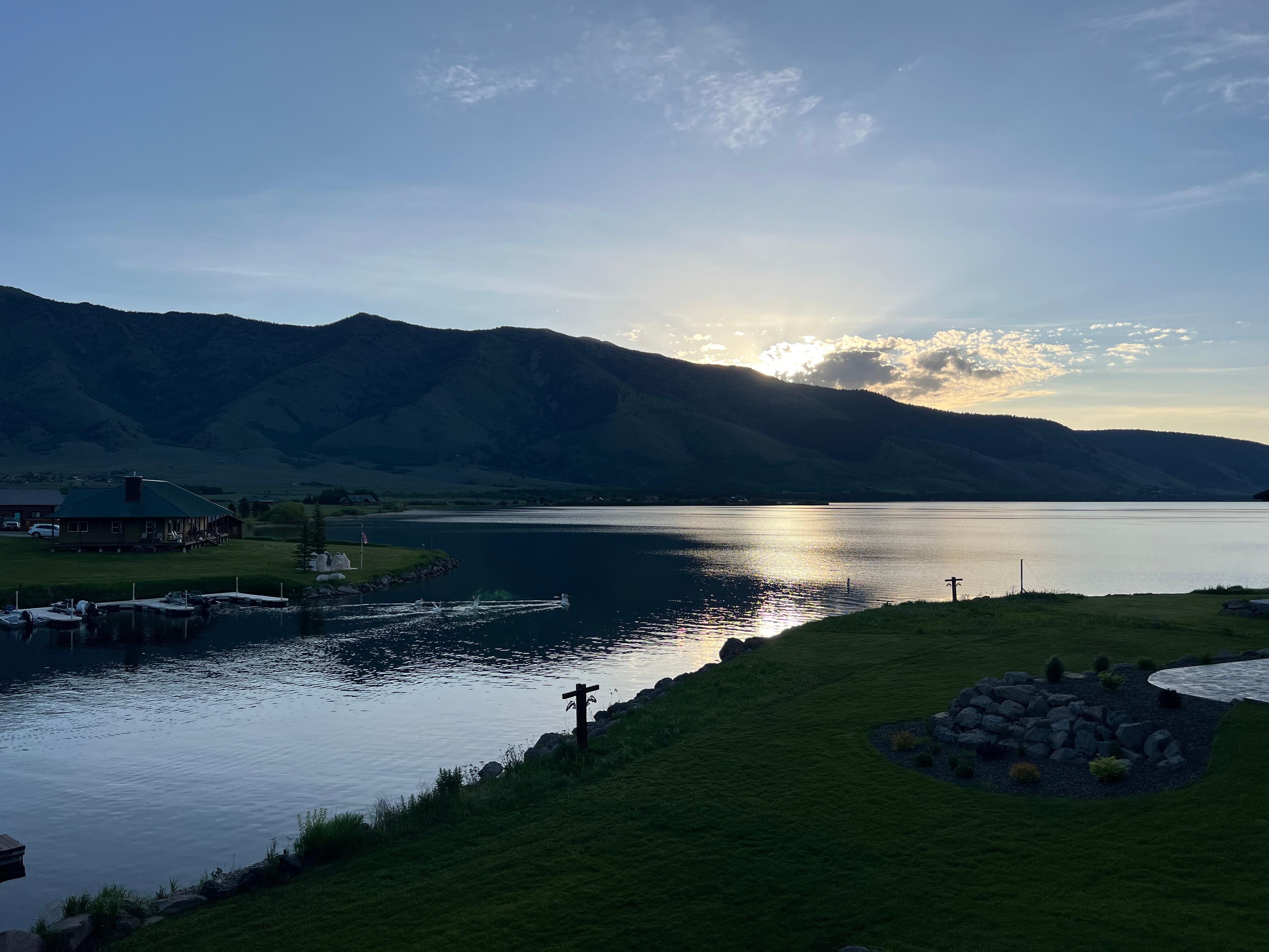 Hudson's Hideaway on Henry's Lake - Come and experience this beautiful cabin in a gated community right on the waterfront of Henry's Lake with your own private boat slip and private community boat launch just a few doors down. Perfect home base for fishing, ice-fishing, boating, snowmobiling, ATV riding, hiking or just relaxing and enjoying each others company. Located off the shores of Staley Springs, one of the most popular fishing spots on the lake. It is also just a short 20 min drive to Macks Inn, 26 min drive to West Yellowstone, 1.5 hours to Big Sky Ski Resort, and nearby to local snowmobiling, ATV, and hiking trails (see maps). INSIDE the main floor features HUGE Kitchen, Living, and Dining Area with gorgeous views of Henry's Lake and the surrounding mountains, and a spotting scope provided for you to take it all in. GORGEOUS kitchen is fully stocked with everything a chef would need to feed the masses. A private master with its own exterior entrance and a master bath that will blow you away with separate tub, shower, double sinks and walk in closet. Basement features additional family room with a fireplace and pull out sofa. Three additional bedrooms and baths (2 of them attached) and under closet storage area with 4 sleeping pads for extra guests, a pack and play, and toys for the little ones. Head in to the garage through the laundry room with full size washer/dryer, half bath, and mudroom area. Above the garage you will find a kids paradise. The loft has a twin over twin bunk bed, full over full bunk bed, and 2 queen beds with it's own full bath and heating and cooling system. Top off the fun with a large TV, Lovesac, and video game console with all your favorite retro games pre-loaded. In the garage you will find a ping-pong table and outdoor games like spike ball and corn hole, 2 paddle boards, an extra fridge/freezer, paddles for the BRAND NEW community pickleball court, and plenty of hooks and bench space for all your winter gear. Other home features include professionally designed interior, 8 person hot tub, gas firepit, 4k Smart TV's in every room, huge patio area with plenty of chairs from the walk-out basement, and everything you need to have a blast!
