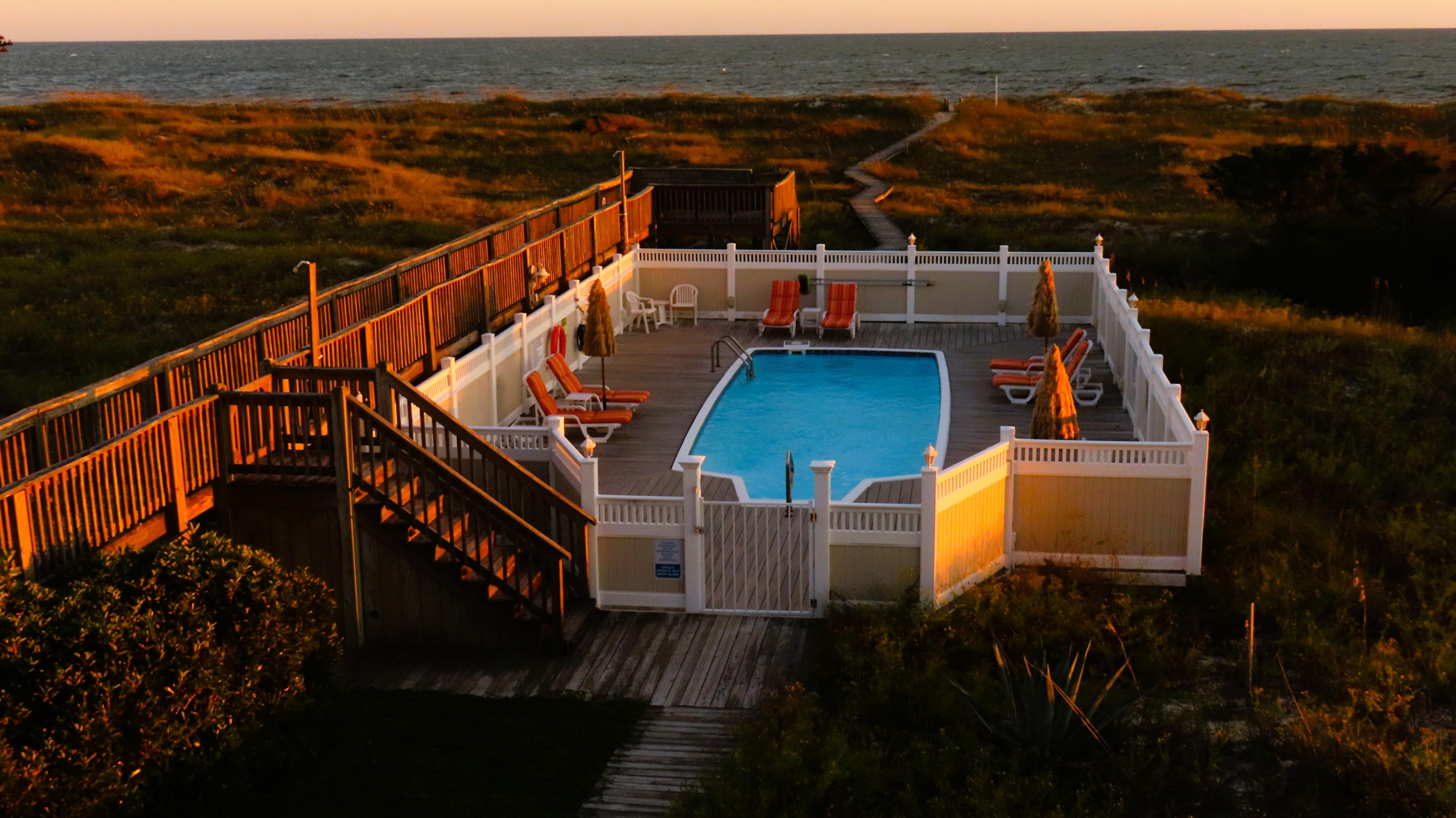 Enjoy 9 acres of privacy on Ocean Blvd West with 420 feet of stunning beach frontage in the West End gated community. This exceptional property has a large pool and decking with attractive fencing which assures total privacy. "Babington" is privately maintained and immaculately clean. All bed linens and bath towels are included throughout the year. All beds are freshly made upon your arrival so that guests can enjoy a stress-free vacation in this gorgeous home. This 5 bedroom, 4 bath home accommodates 11 guests. The first floor has 2 bedrooms with a king bed in the master bedroom and a double and twin bed in the second. The second floor has 3 bedrooms with a queen in the first, a queen in the second and a queen in the third. All upstairs bedrooms have an ocean view and an oceanfront porch with rockers. This home offers central heat and air, dishwasher, microwave, washer and dryer, quick-chill refrigerator, additional large ice maker, high-speed internet, smart TV's in all bedrooms, smart TV in living room area with Apple TV, DVD player and surround sound speaker, upper and lower porches, enclosed outside shower with hot and cold water, fish cleaning station with hot water, covered grilling area with seating and covered parking. The private walkway to the beach has a sun deck, stargazing deck and multiple showers. The pool is nicely furnished with chairs, lounges, tables and umbrellas.