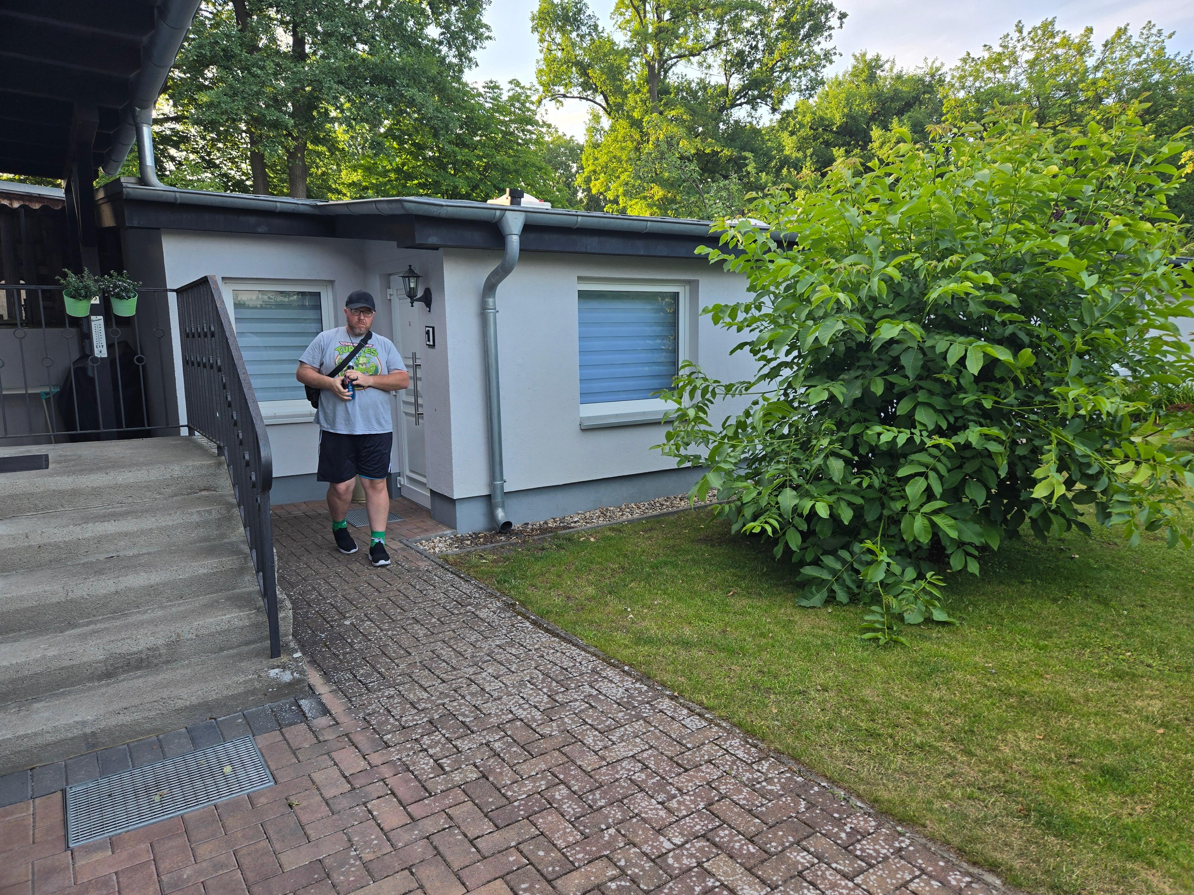 There are seating in the garden. A covered bicycle parking space is also available. The garden can be used, seating is available. A covered bicycle parking space is also available. It is about 4.5 km to the city center and can be easily reached by bus and train. The Rehbrücke train station can be reached on foot in about 15 minutes, from where you can take the regional train to Berlin. In the nearby Waldstadt Center you have good shopping opportunities. Here are some shops and a large supermarket.