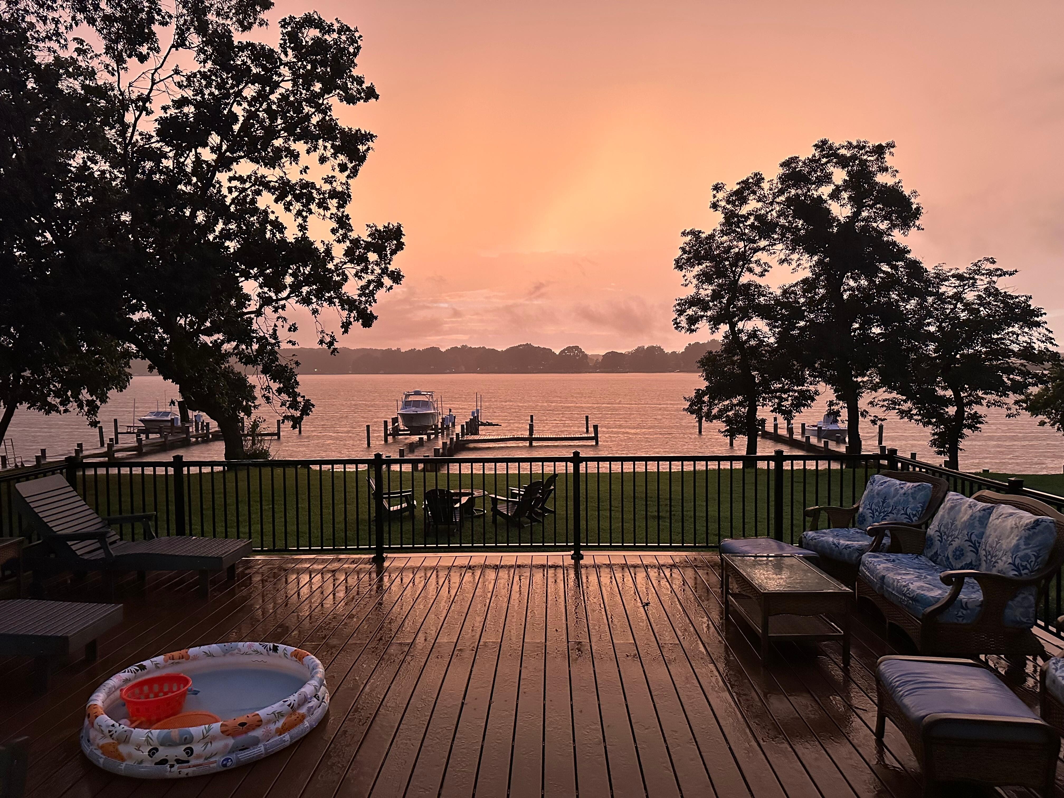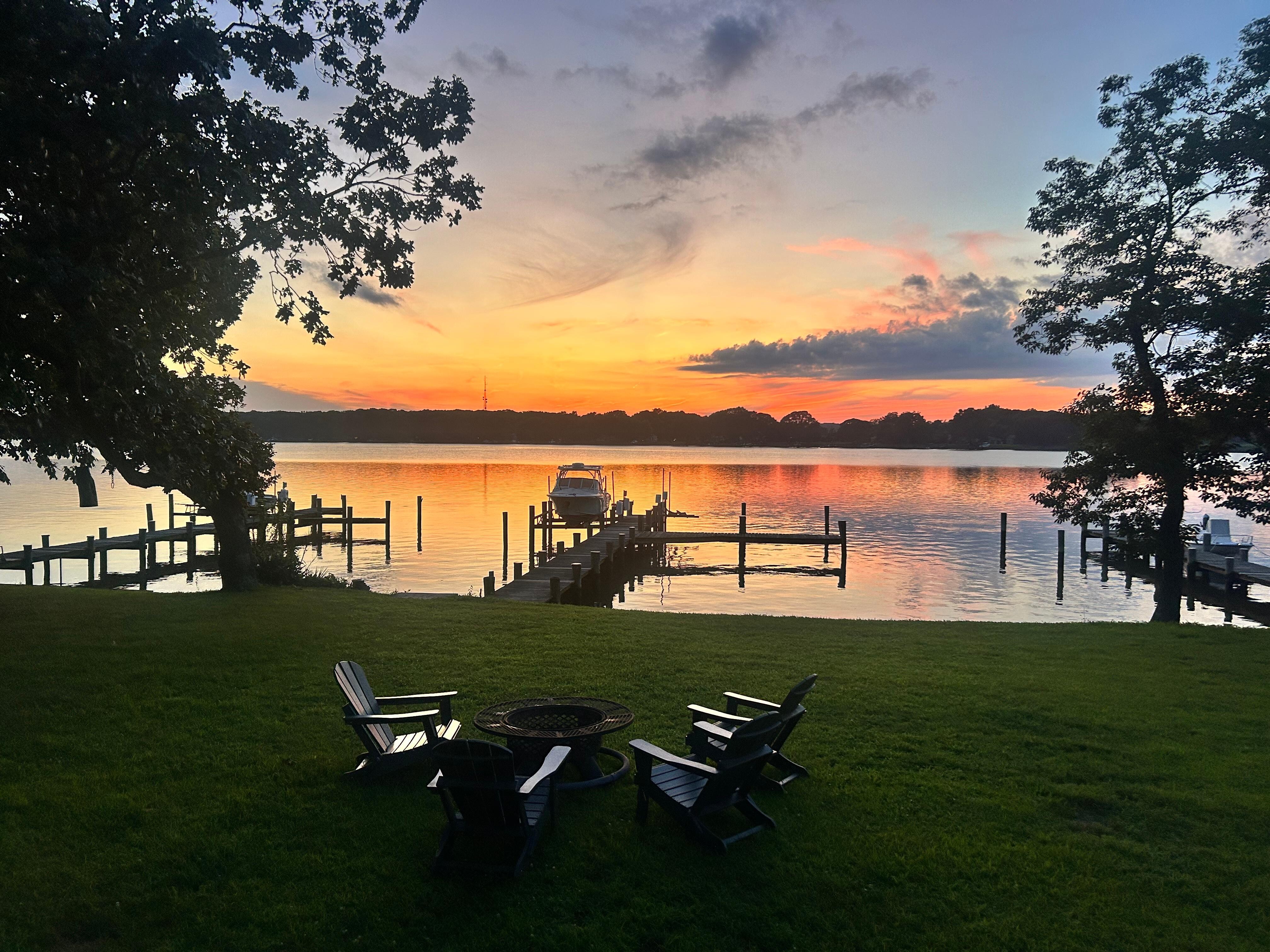 We really enjoyed our stay. Plan to come back and stay again. The 3 bedrooms were huge! Nicely appointed kitchen with everything that you would need. Very clean. We enjoyed sitting on the dock and watching the sun set. The tennis courts and play area down the road were immaculate- literally 4 or 5 minutes by bike. Our only suggestion for the owners would be to maybe add a table and chairs for a family to eat on the deck.