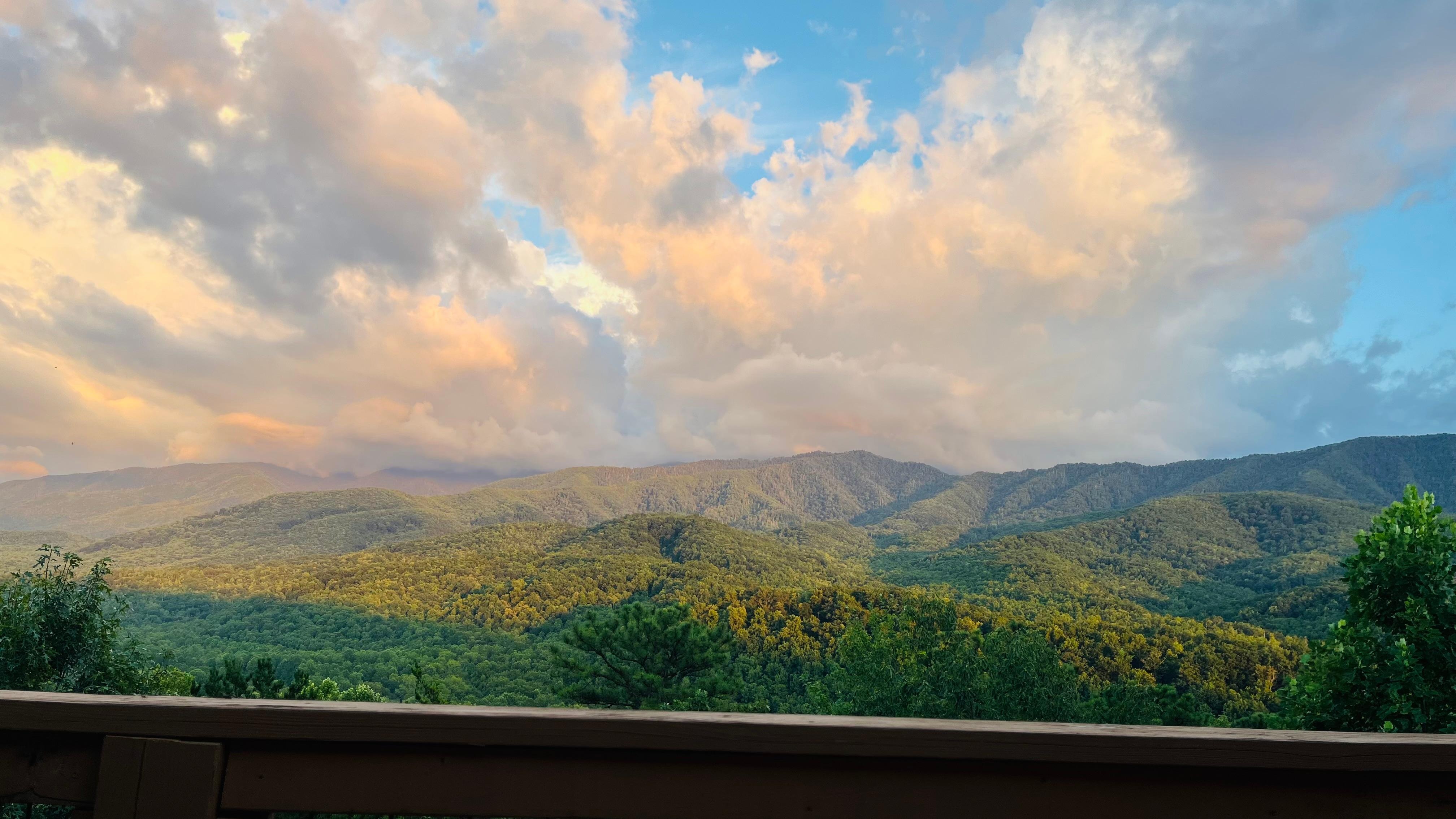 Welcome to Cabin in the Clouds! This gorgeous 4 bedroom cabin is located in the Great Smokey Mountains and tucked away in The Village of Cobbly Nob. It offers a peaceful mountain escape with all the conveniences of being located 11 miles from the heart of downtown Gatlinburg. This cabin features large balconies and a sunroom with picturesque views of the mountain range, movie room with over sized couch, karaoke stage, popcorn machine, sauna, and game room. This is the perfect mountain escape!