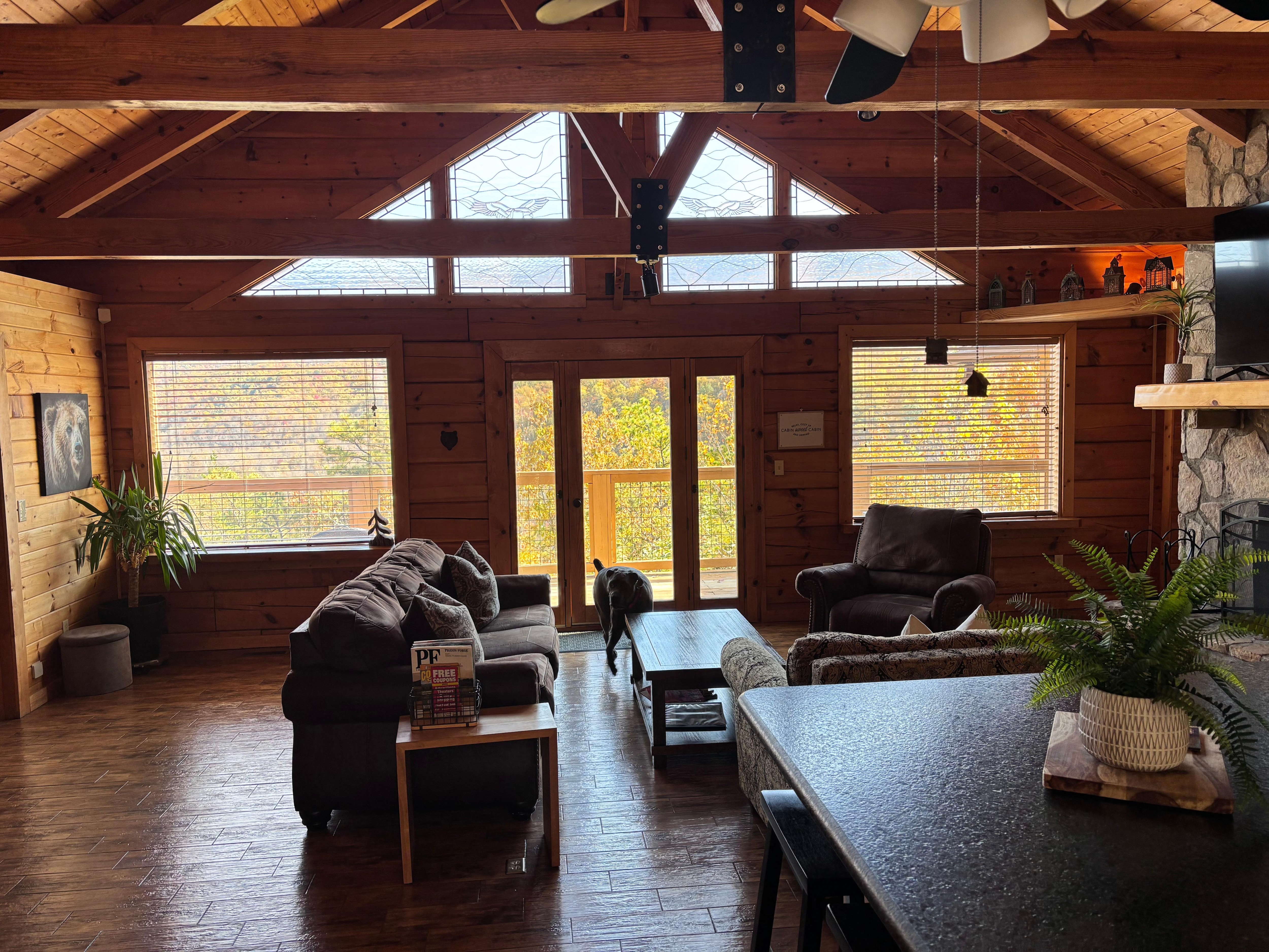 As you walk into this cabin, stop and take in the beautiful vaulted ceilings, open layout, custom made glass windows, AND THE MOUNTAIN VIEW!! This cabin features large balconies and sunroom with picturesque views of the mountain range perfect for sipping your morning coffee with a view. It's tucked peacefully away at the end of the street as you dead end right into the driveway for ultimate privacy. Your guests will stay perfectly entertained with a movie room, board games, popcorn machine, karaoke stage, Roku streaming capability on a large screen, and a comfortable over-sized reclining couch to chill out and gather. This house also has a sauna, activity-filled game-room with multiple gaming systems, large balcony equipped with corn hole boards and BBQ Grill, and lots of gathering / lounging spaces. What a perfect space to leave the balcony door open and enjoy a little indoor/outdoor living. Cabin in the Clouds is sure to provide the ultimate Smokey Mountain getaway, with all the conveniences of a home and surrounded by many awaiting adventures.