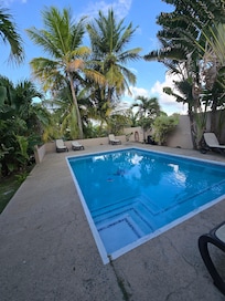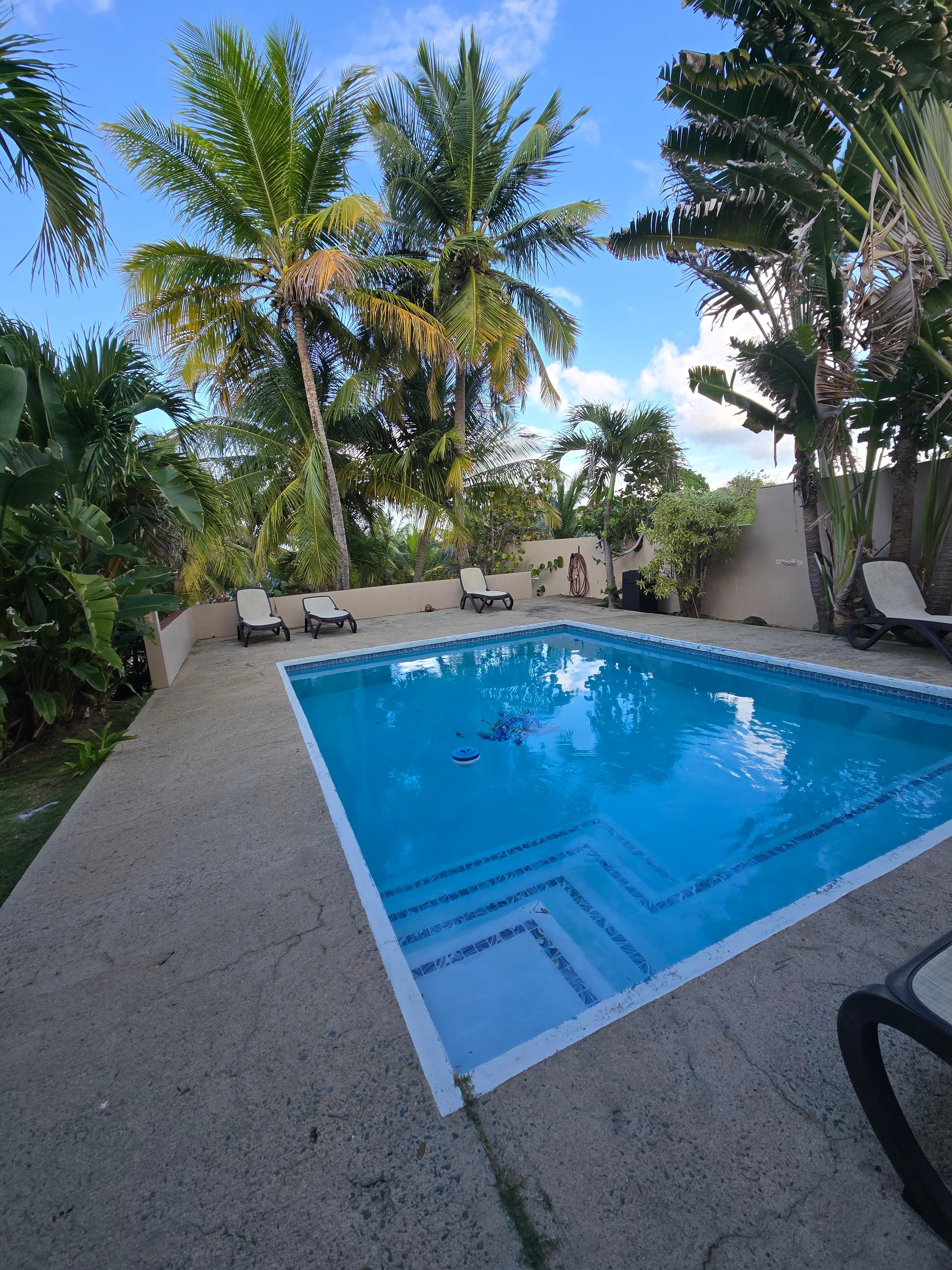 Tropical Zen.... A retreat like no other! You'll be immediately greeted by the native balmy breezes of Vieques, take a dip in our pool surrounded by colorful flowers and coconut palms, stroll along the semi-private beach, take a dip in the tranquil crystal-clear Caribbean Ocean. This upstairs rental sleeps 8 people and is perfect for families. The entire estate is surrounded by a concrete wall with gated entrance. A private beach access. Wi-Fi and workspace. *Guests of Sands Beachfront will receive a special discount when they book with Tropic Zen Yacht Charters, a premium snorkeling and beach hopping yachting experience*