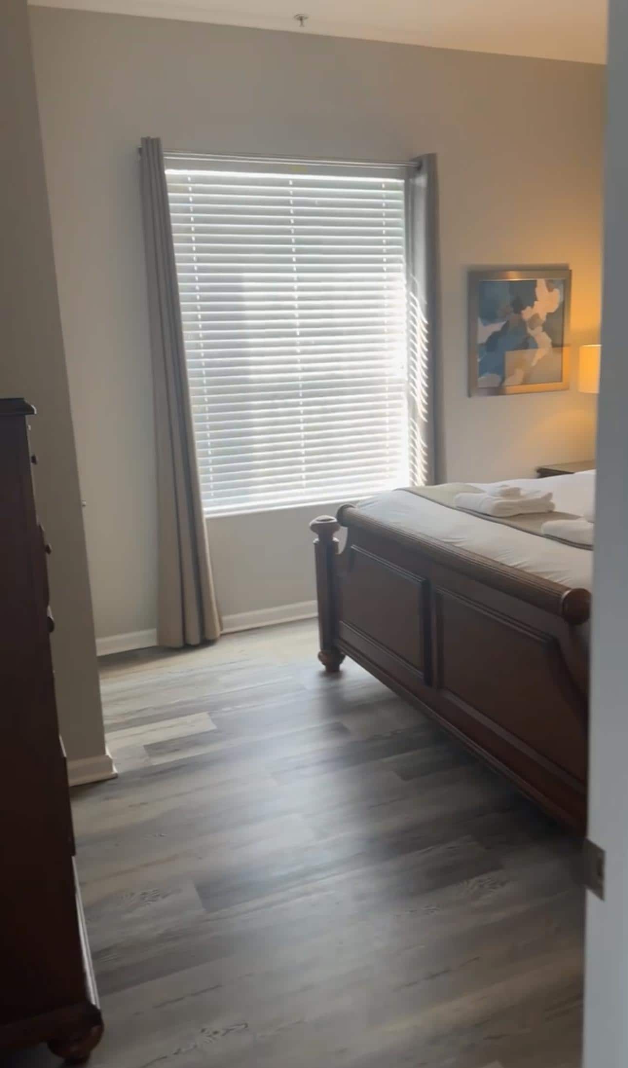 Bedroom #3 presents a king size bed filled with rich Bahamian charm, rattan backing upon the headboard, as well as the armoire. Kick off your shoes and stay away, because this den offers a wall-mounted flat-screen television, for your binge-watching pleasure.