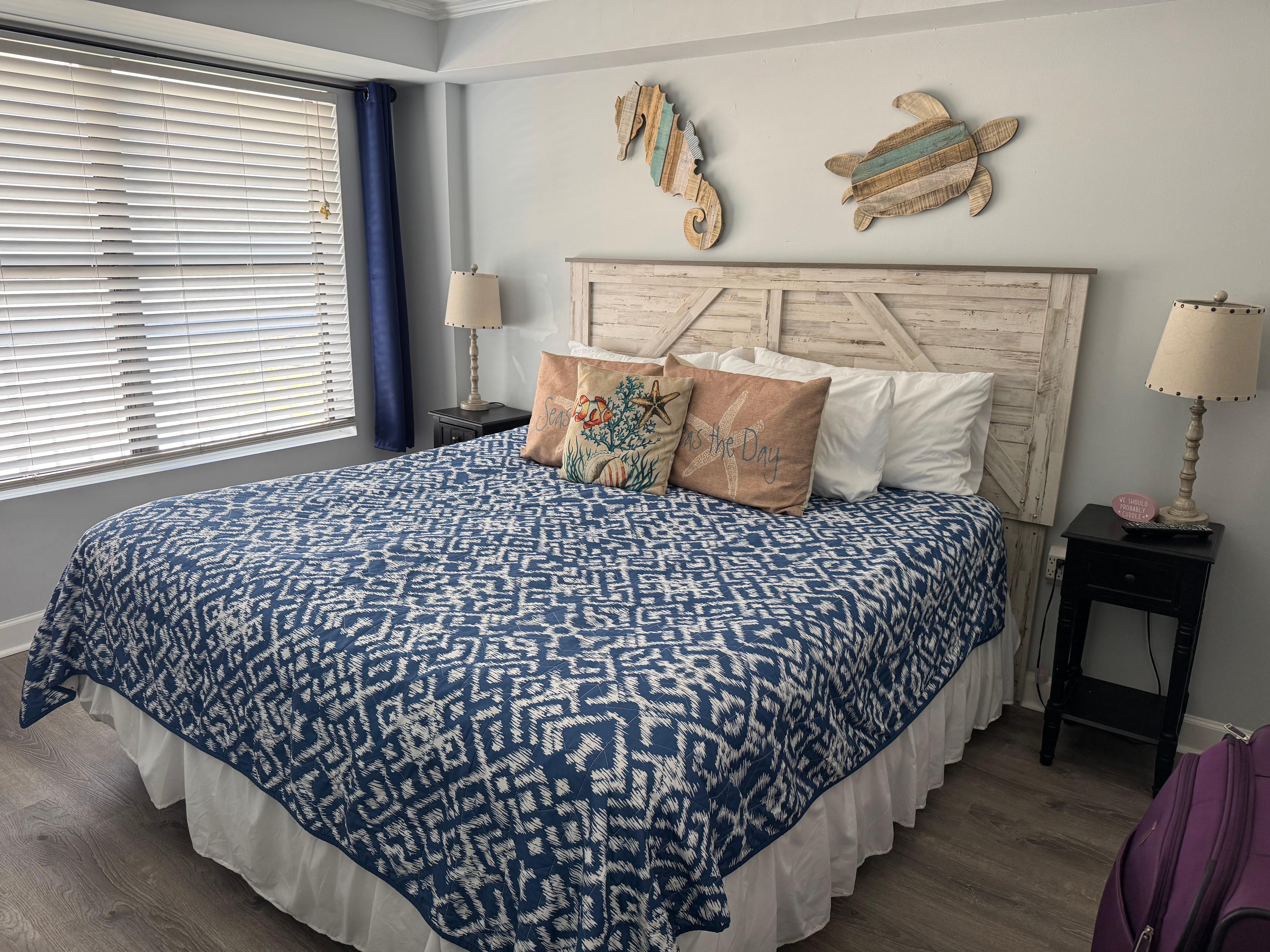 • King-size pillow-top mattress in the bedroom.