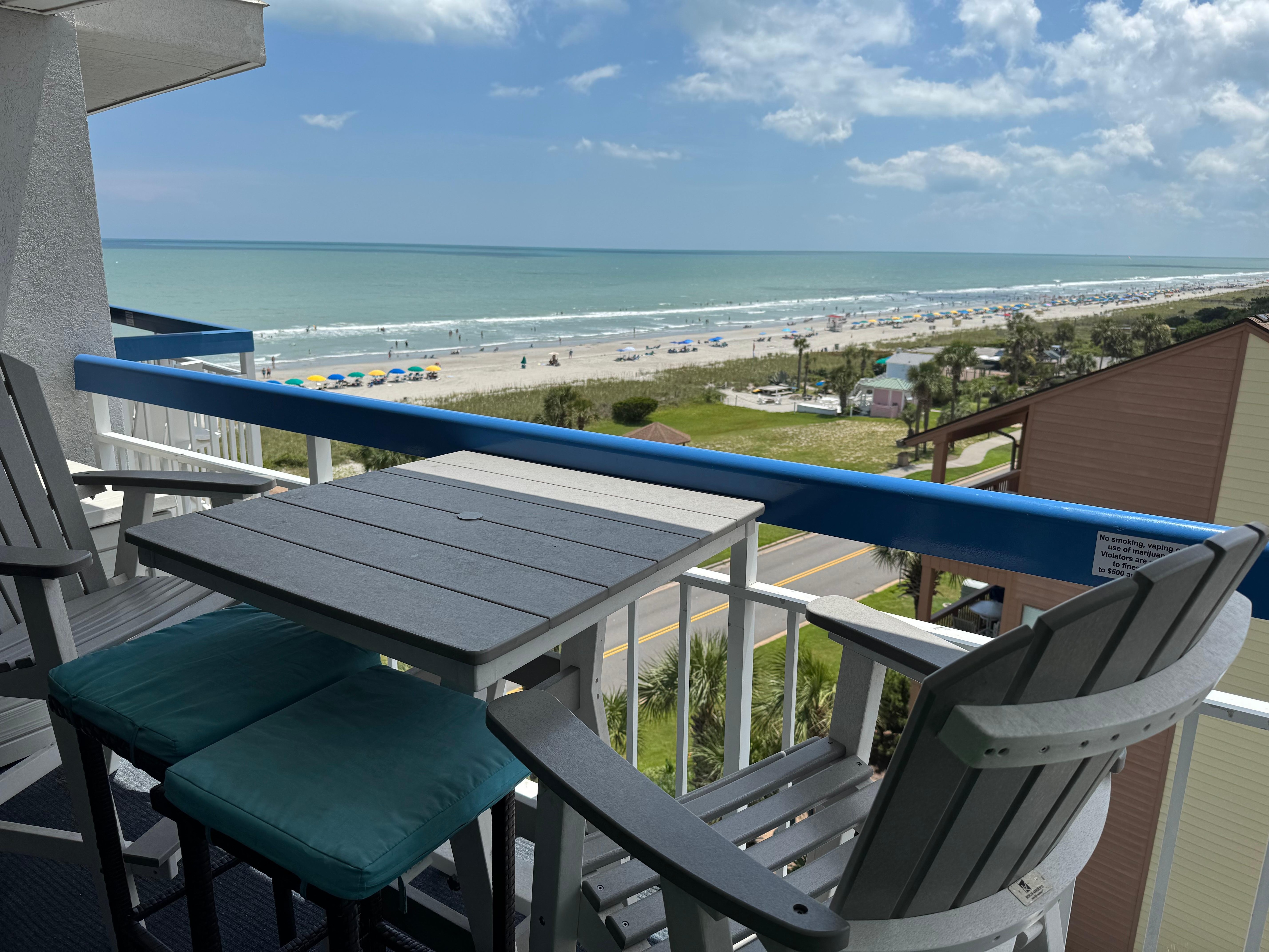 Enjoy the ocean views from your large balcony on the 6th floor. The sights and sounds of the crashing waves from the balcony are so relaxing. Forest Dunes is on CABANA ROW of the Golden Mile, the quieter area of Myrtle Beach which is perfect for beaching, shelling, walking and relaxing.