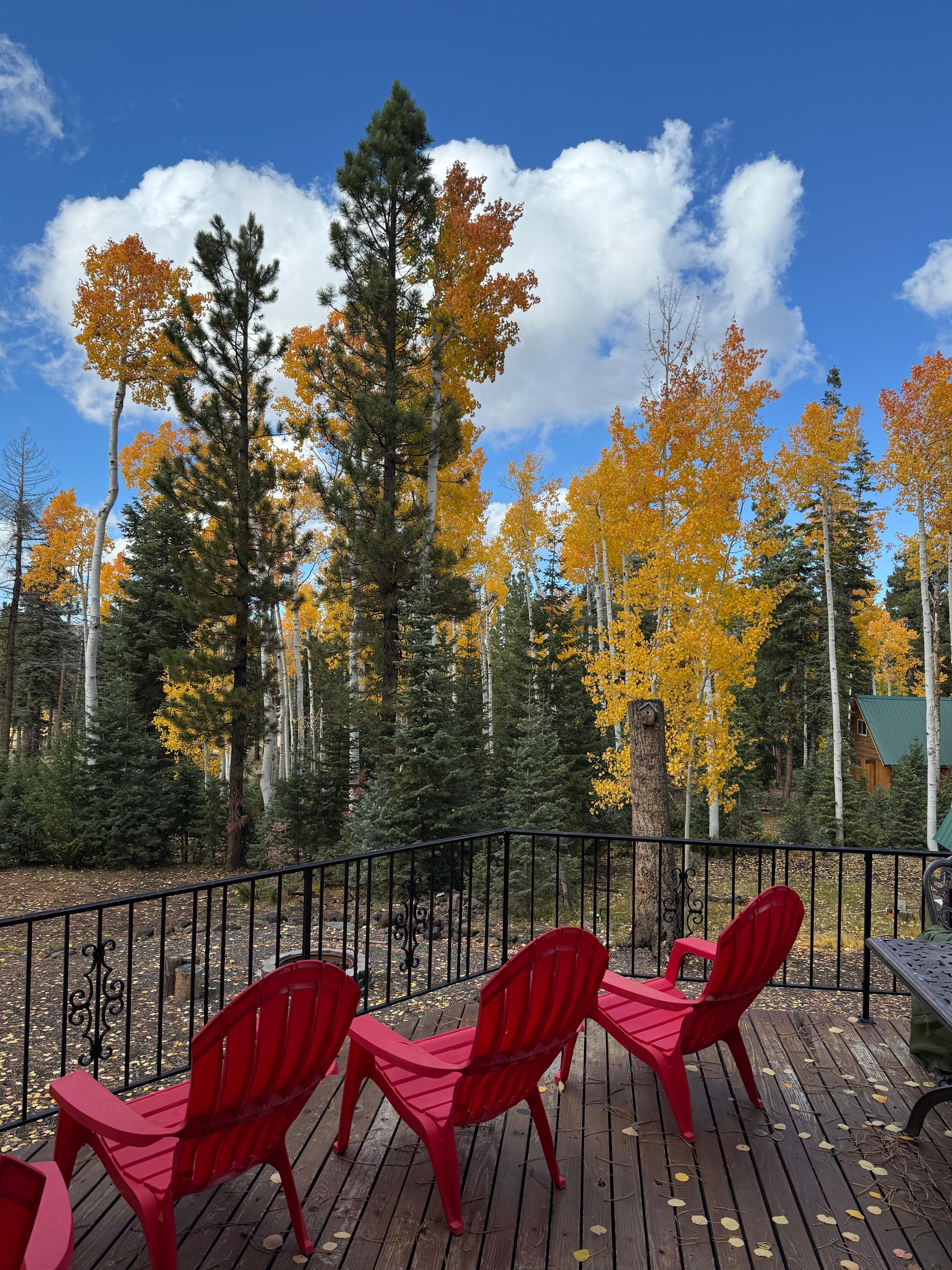 There is one private queen bedroom on the main floor with two queen beds to share one open loft upstairs which allows for tree top views through the large picture windows.