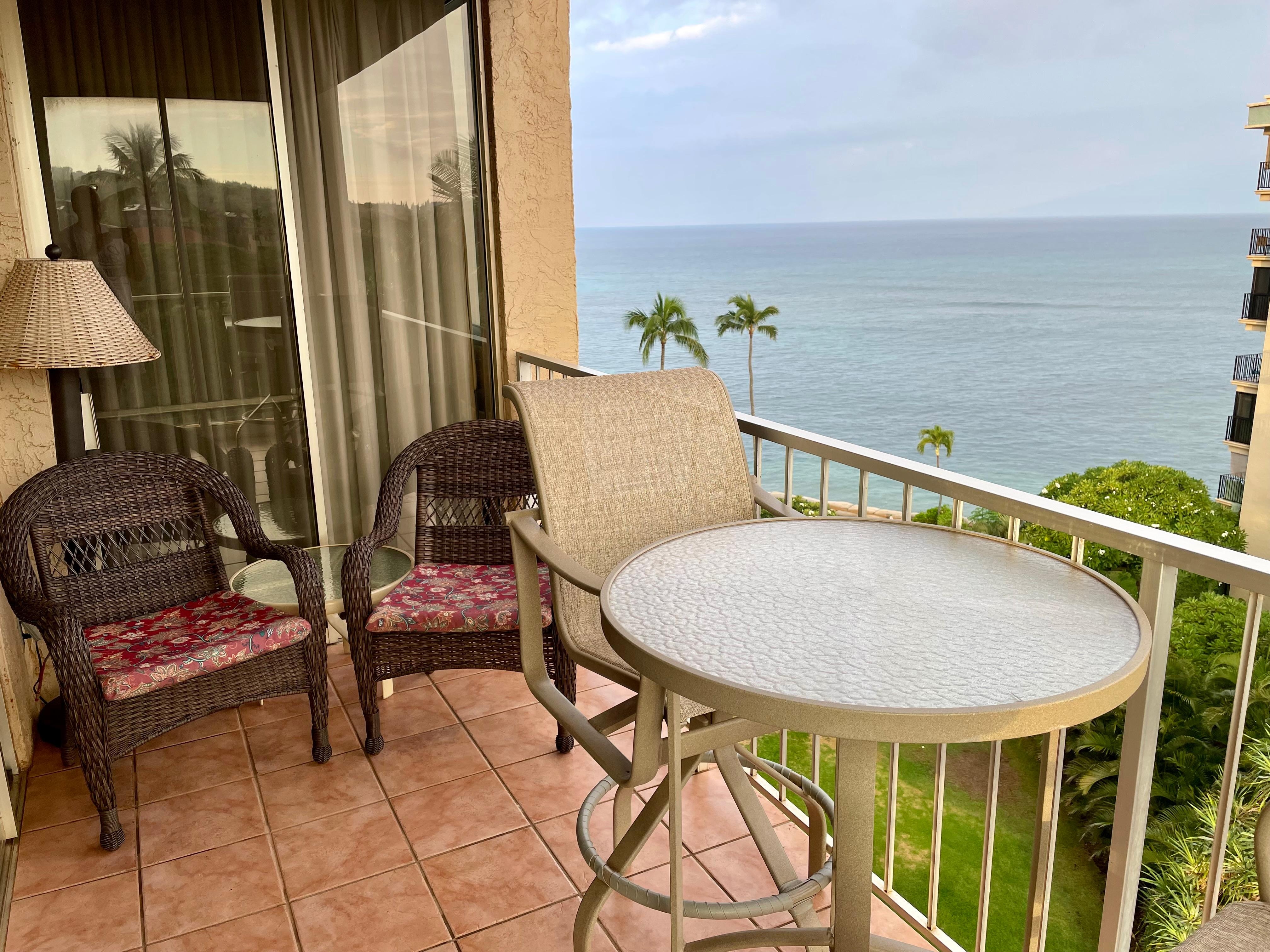 -Ocean view lanai with line of sight all the way up the coast of Kahana, Napili, and Kapalua.