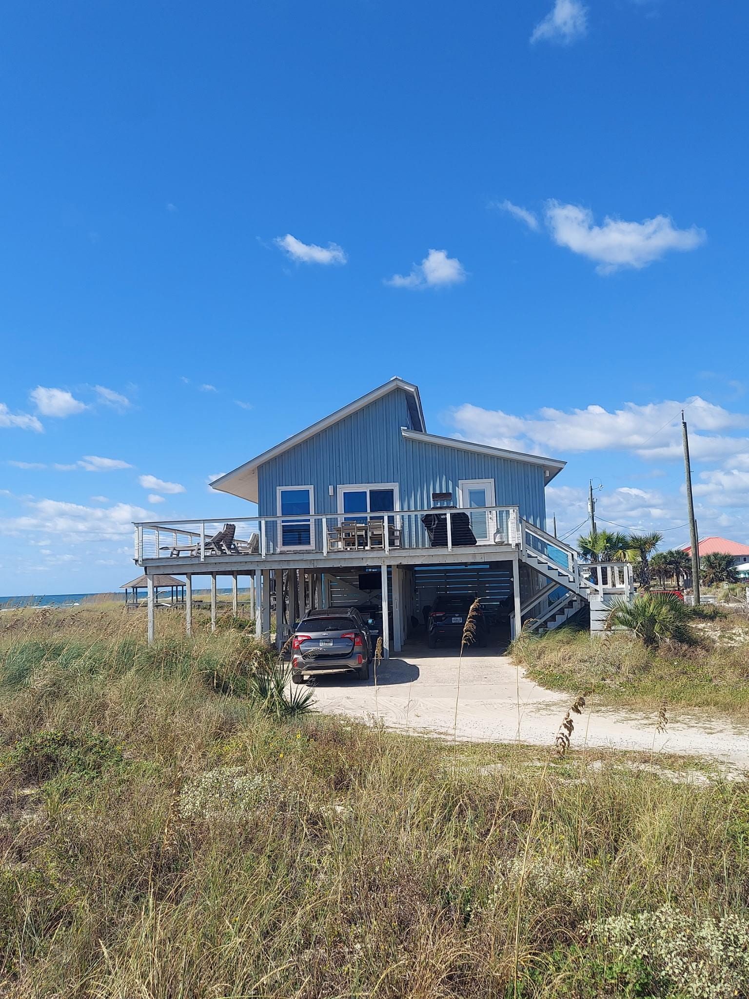 Stunning 3 BED 2 BATH close to the heart of St. George Island. Enjoy incredible sunrises and sunsets from the deck or HOT TUB. This freshly remodeled home is new to the rental market. BRAND NEW stainless-steel kitchen appliances and an open floor plan with plenty of room for family and friends to create those special beach memories. LVP flooring, quartz countertops, tiled shower and bathrooms, and a separate washer and dryer area, Keurig coffee maker, SONOS sound system to name a few of the high-end items this beach home has to offer! Lower level game area, shaded seating group, hot tub and fire pit as well as outside shower to wash away all that beach sand!