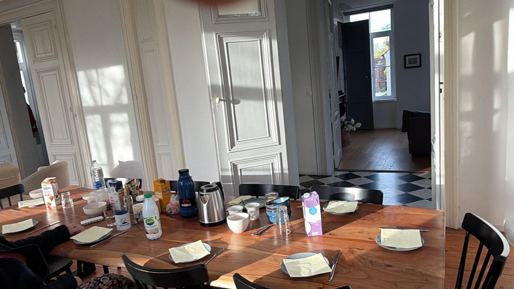 Première salle à manger. Salle à manger du Duplex du Domaine au rez-de-chaussée. Vaste table en bois, jusqu'à 12 couverts.