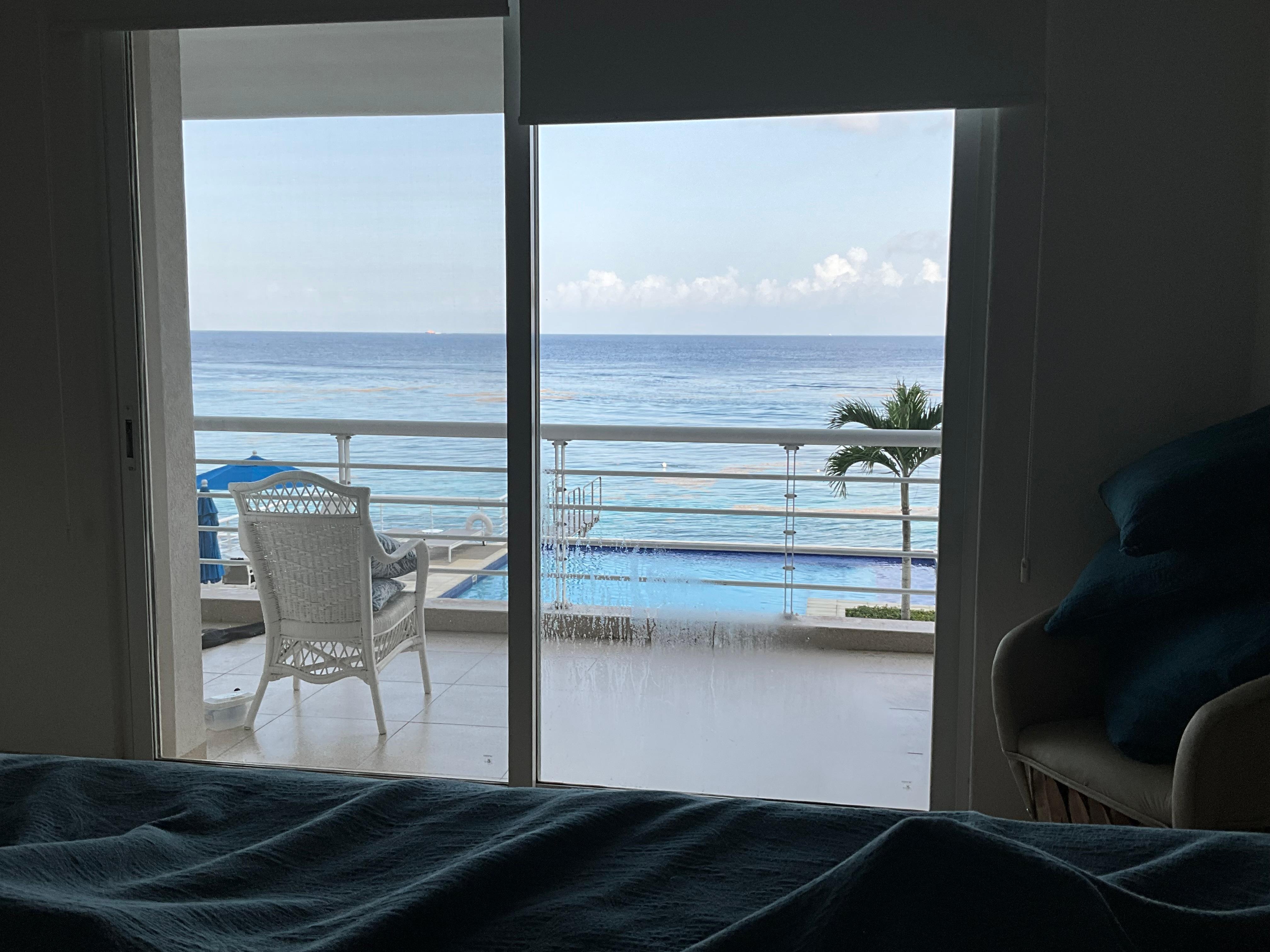 This gorgeous oceanfront condo will instantly feel like home as soon as you arrive! With a open layout, there's plenty of natural light, beautiful ocean views, and space for everyone in your group to kick back and relax. Enjoy incredible views of the turquoise Caribbean Sea from all 3 bedrooms. The master suite has a bathtub for relaxing soaks. You'll love the spacious private terrace overlooking the pool and ocean. It's equipped with a grill and dining table for sunset meals with your friends and family. A large kitchen is fully stocked with everything you need to cook when you feel like staying in. Central air conditioning will keep you cool and comfortable.