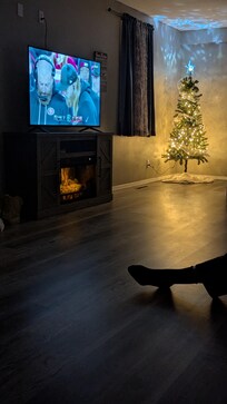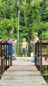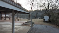 Wake up steps from the water and spend evenings around the fire pit overlooking the river. This private waterfront retreat features a dock for fishing, a large yard for relaxing, and easy access to Branson entertainment just 20 minutes away. The dock is ideal for fishing and relaxing by the water. Due to natural vegetation along the shoreline, swimming is not recommended.