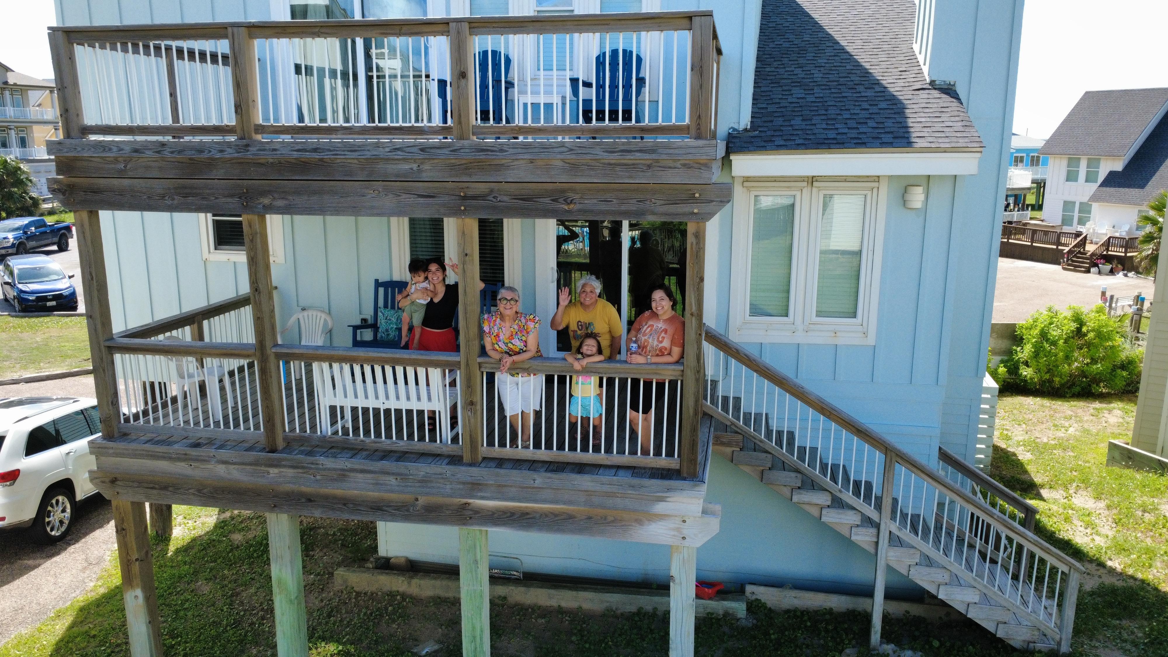 Wind down from your exciting days here by indulging in cool coastal breezes on the second-floor covered deck, outfitted with cushioned Adirondack chairs. Or take in the partial Gulf views from the primary balcony, which also features plenty of seating.