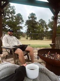 We also have a wood fire pit under the sky located near the covered patio area, if that is more your style.