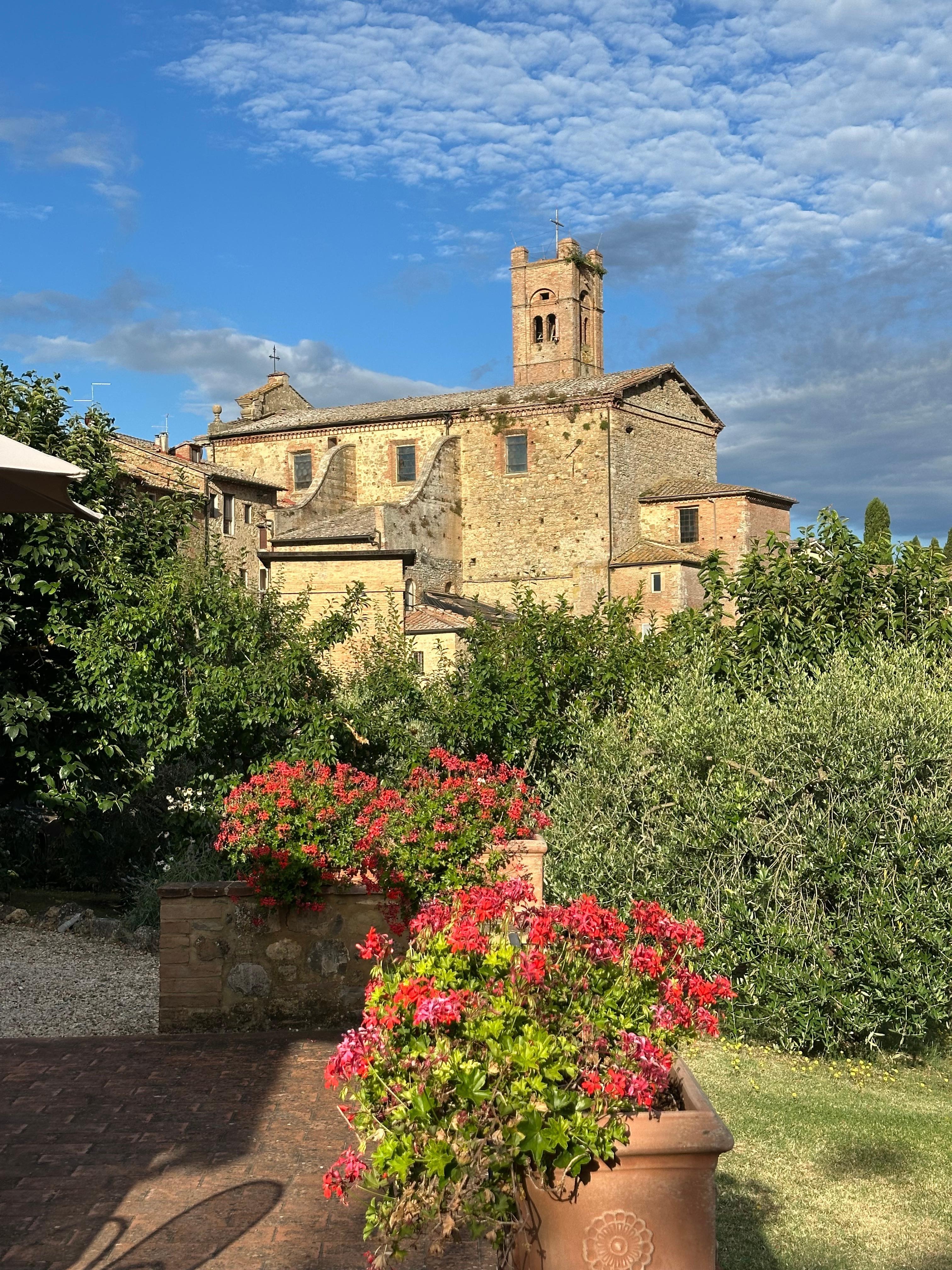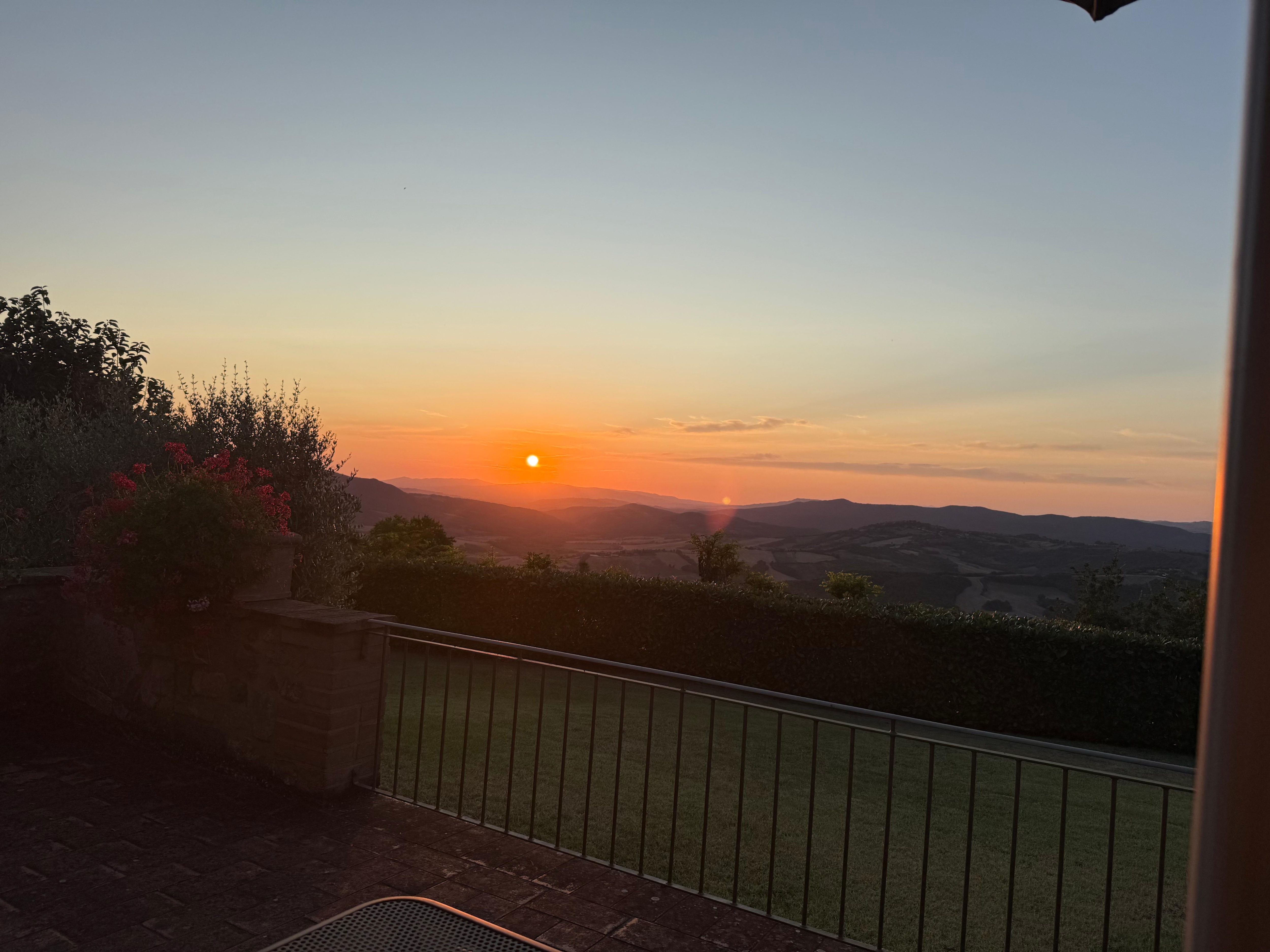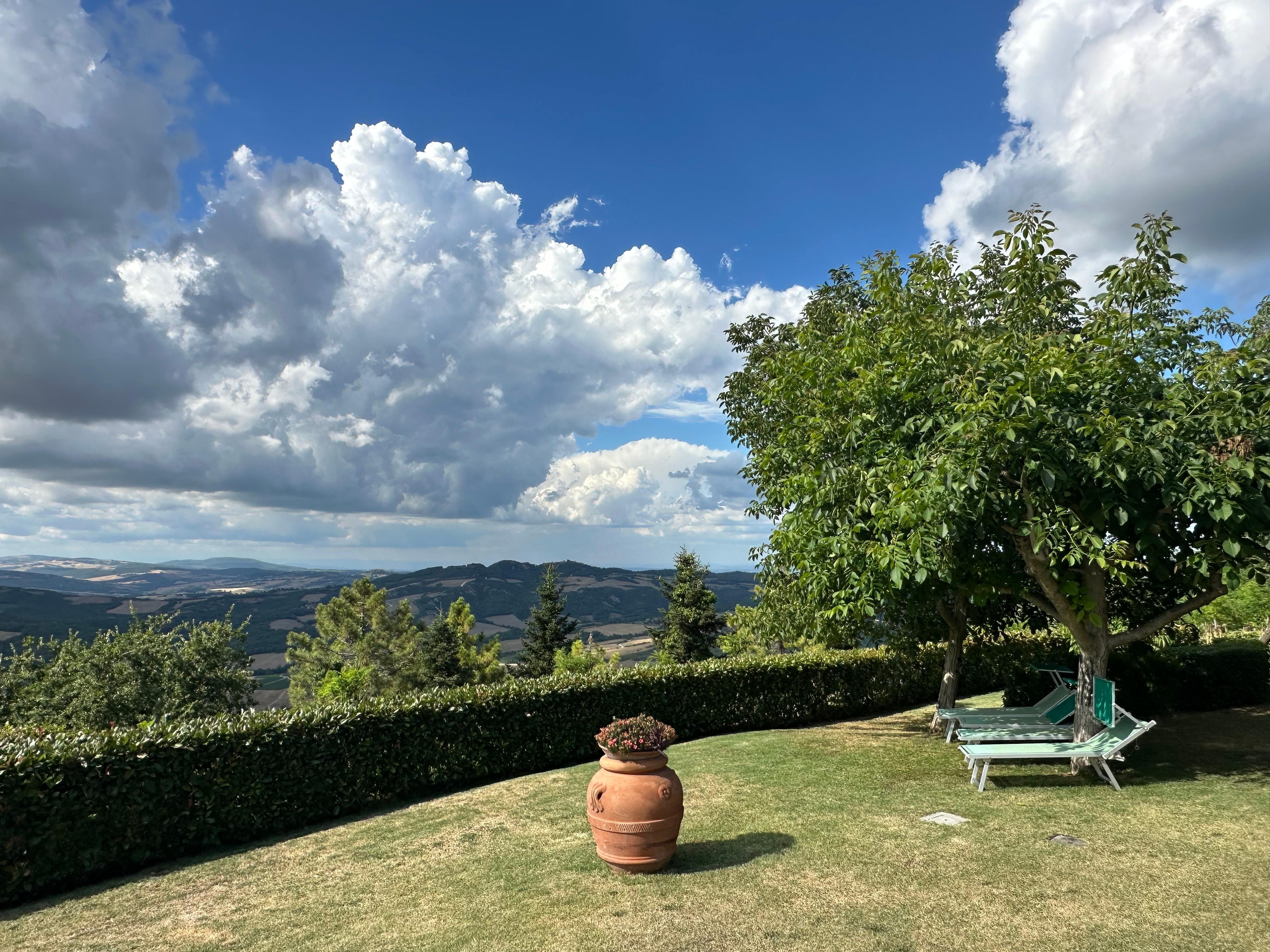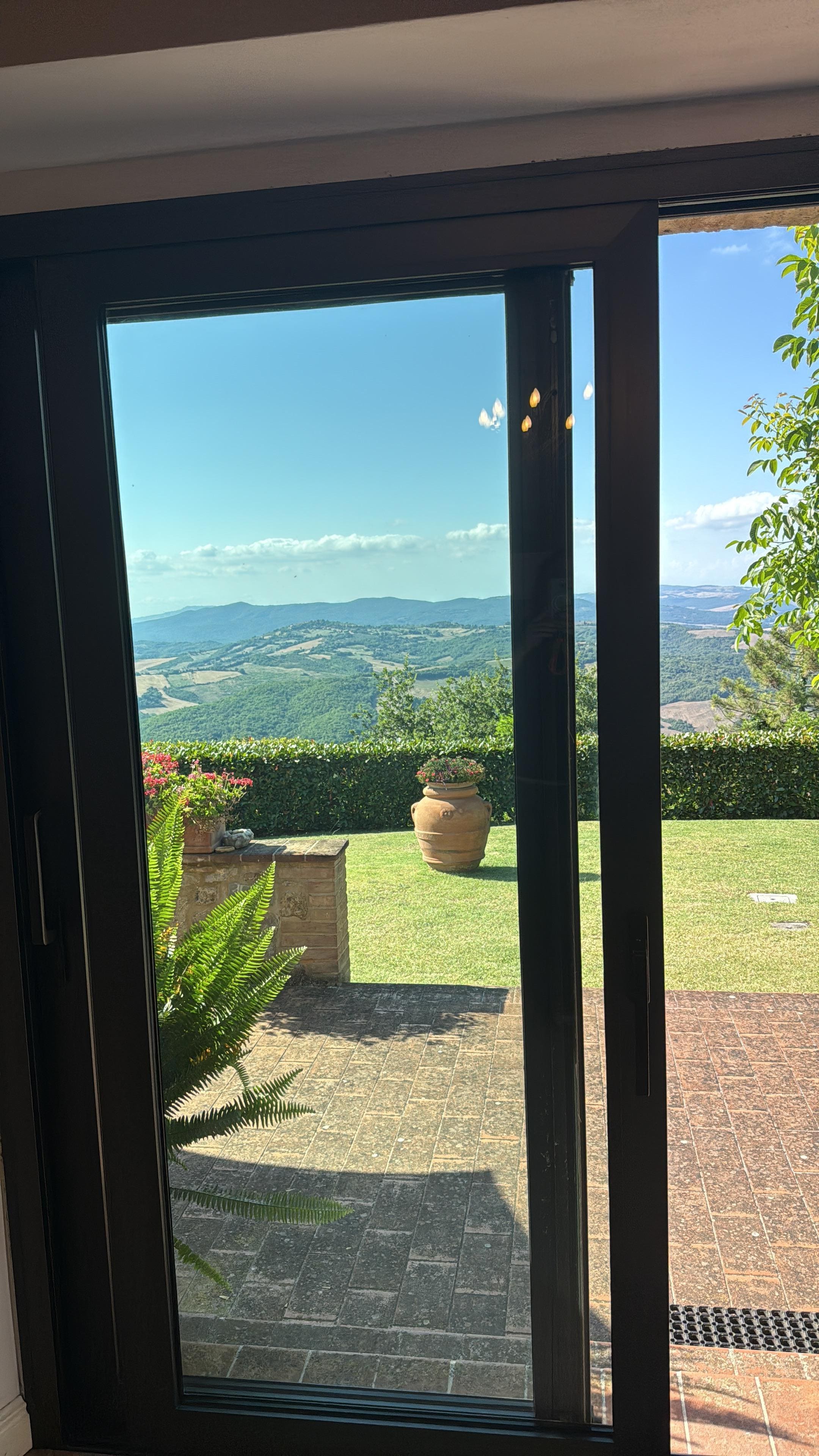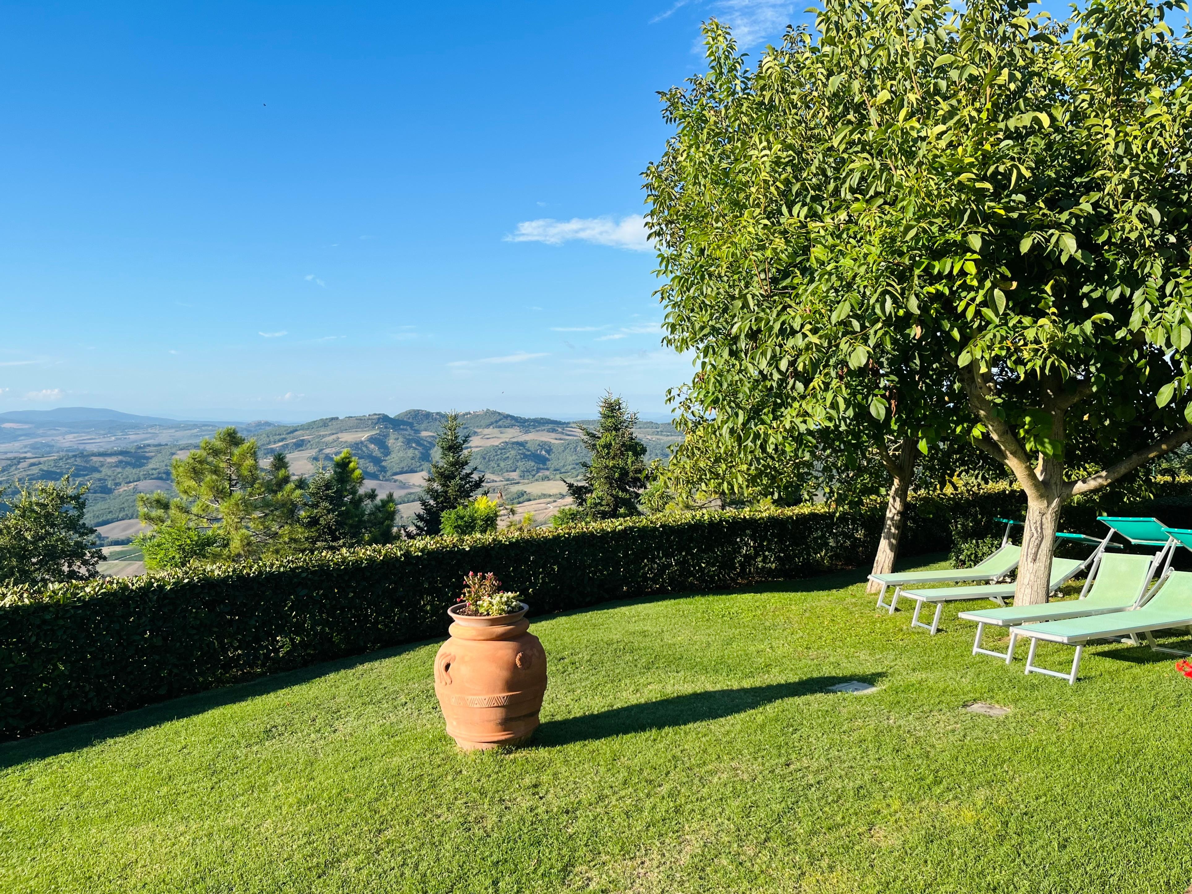 From the splendid glass door we goes down in the terrace where is possible to dine or only drink a wine glass a beautiful postcard panorama where, on the clear evenings, the eye lost on the Cecina's Valley and Val d'Elsa's Valley , up to Volterra and San Gimignano.