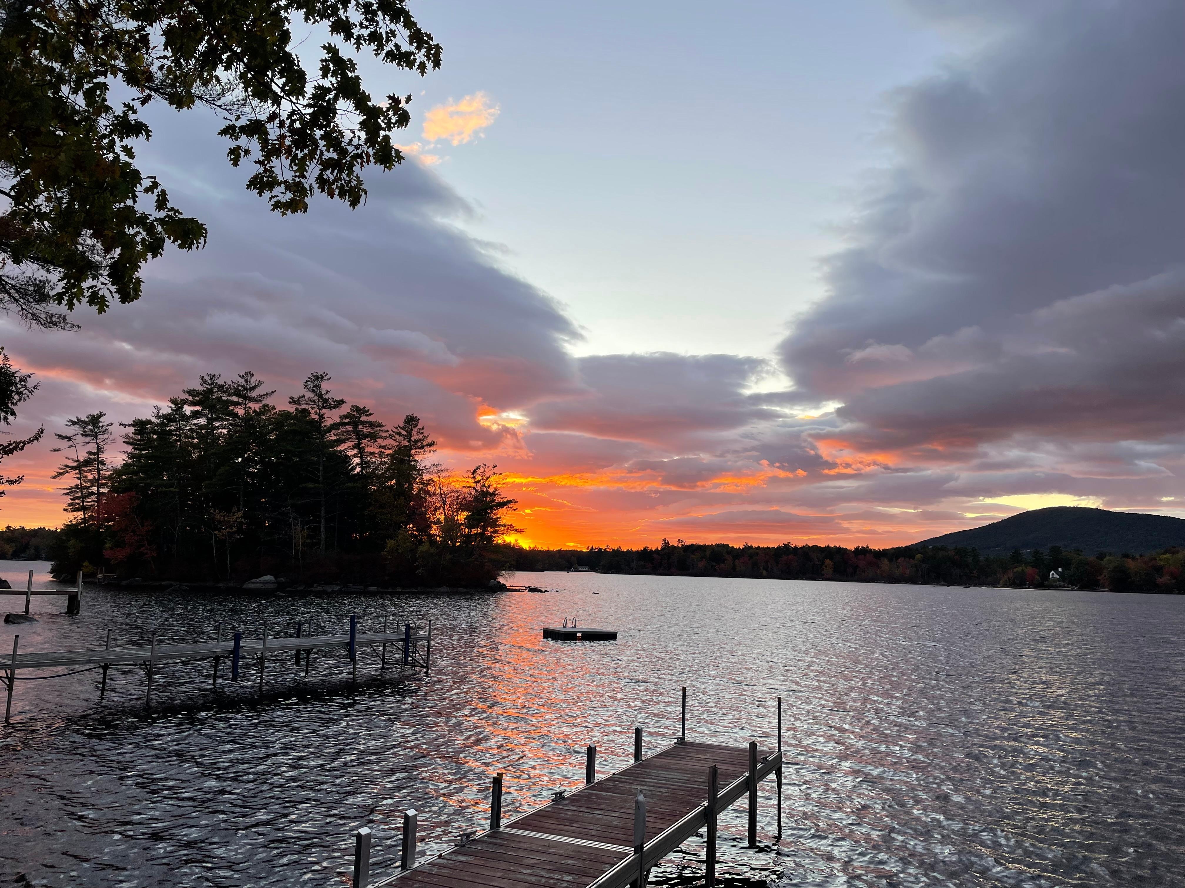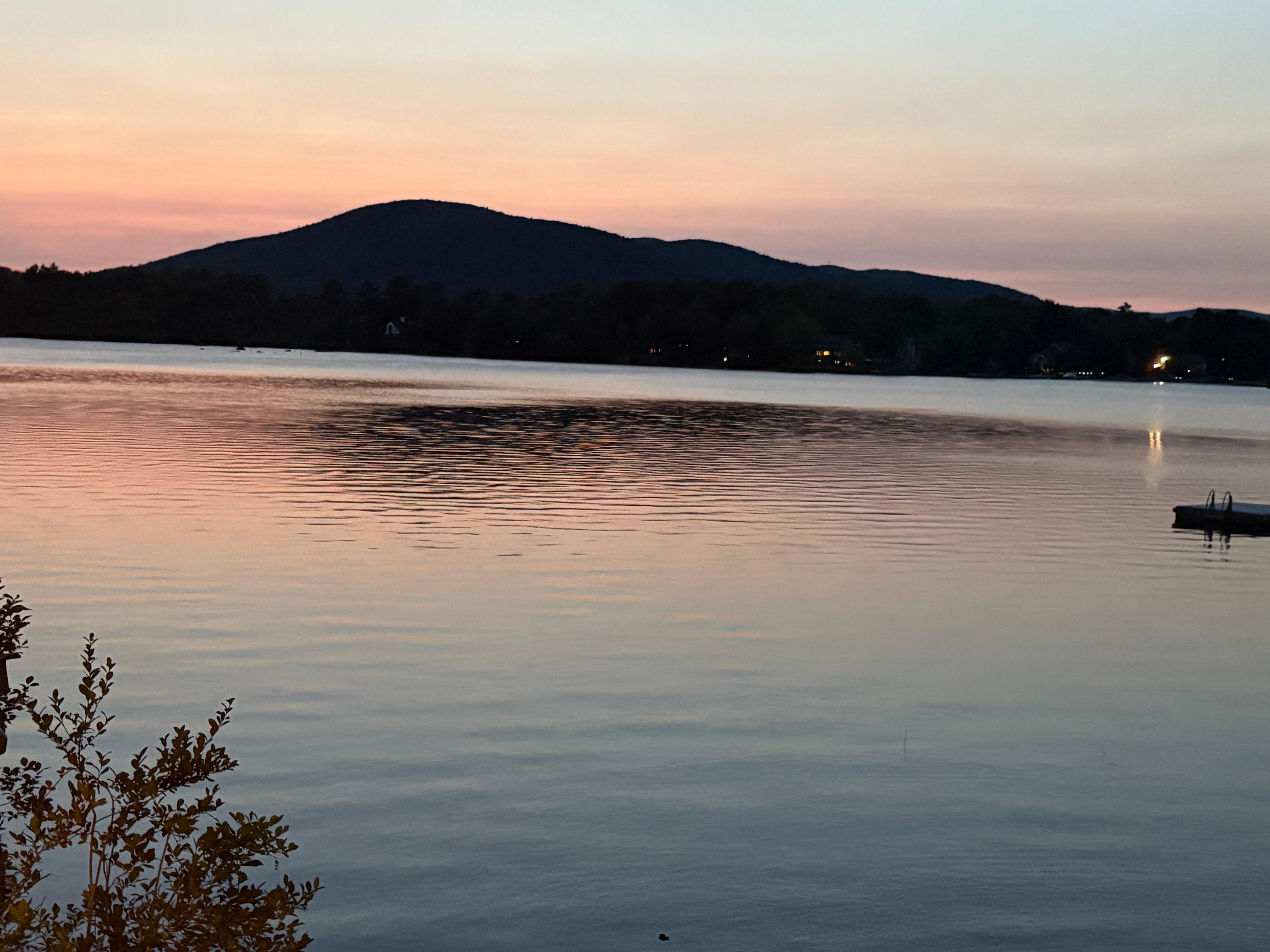 Very private and quiet surroundings, hearing sounds of loons calling for each other. Have a nice dinner on the screened porch with a comfortable wicker sectional. Enjoy gorgeous sunsets with a fire overlooking the lake from the patio. Dock available right on property to accommodate up to 24’ boat with a canoe and 2 kayaks for you to use. Great hiking in the area and castle in the clouds only 2 miles away. You can hike Mt Major, Red Hill or Bald Knob only 15-20 minutes away.
