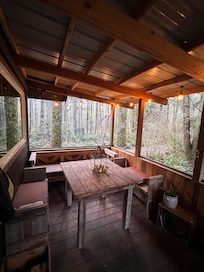 🍃On the property, both cabins share the "meadow space" and tree-fort with the slide. Apart from that, each cabin faces a different direction and offer plenty of privacy even though they are within about 30 yards of each other. It's the best of both worlds whether you rent just one of the cabins and want some privacy, or if you want to rent out both cabins for a larger get-together and have separate spaces.