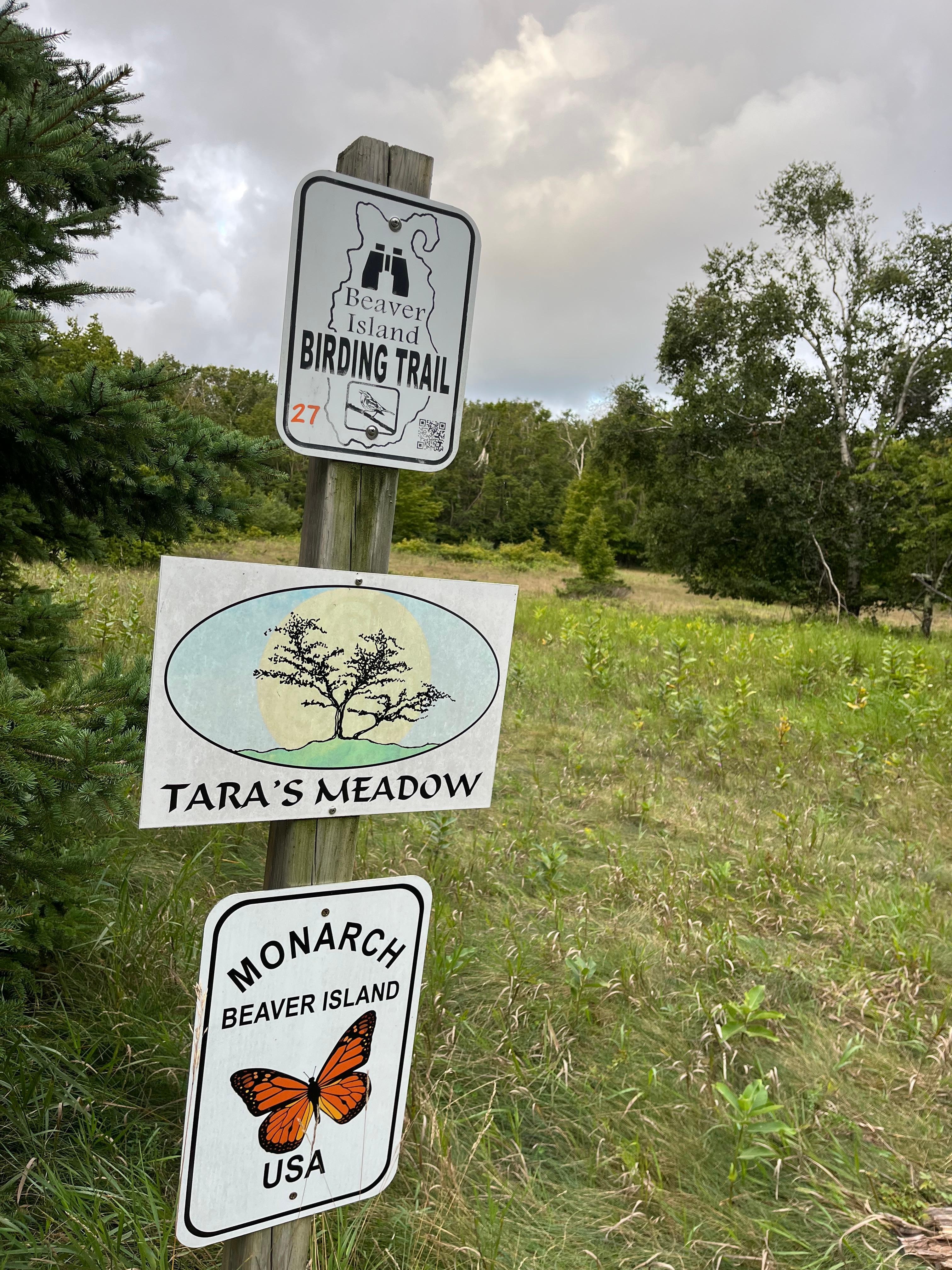 RELAXING IN THE MEADOW Unwind beneath Beaver Island's Dark Sky Milky Way in our official Monarch Butterfly Meadow preserve, with wildlife sightings and sounds of the occasional Sand Hill Crane, Barred Owl, and Common Loon to grace your solitude. Tara's Meadow is perfectly situated for nature lovers as a Dark Sky Nature site, with Beaver Island’s larger official Dark Sky Park just a short walk away. In addition to the birding, butterflies, and wildlife found on location, we offer close access to lakes and trails, marshes and other nature preserves nearby, including Miller's Marsh Natural Area and beautiful Greene's Lake with its 300-year-old oaks on the shore.