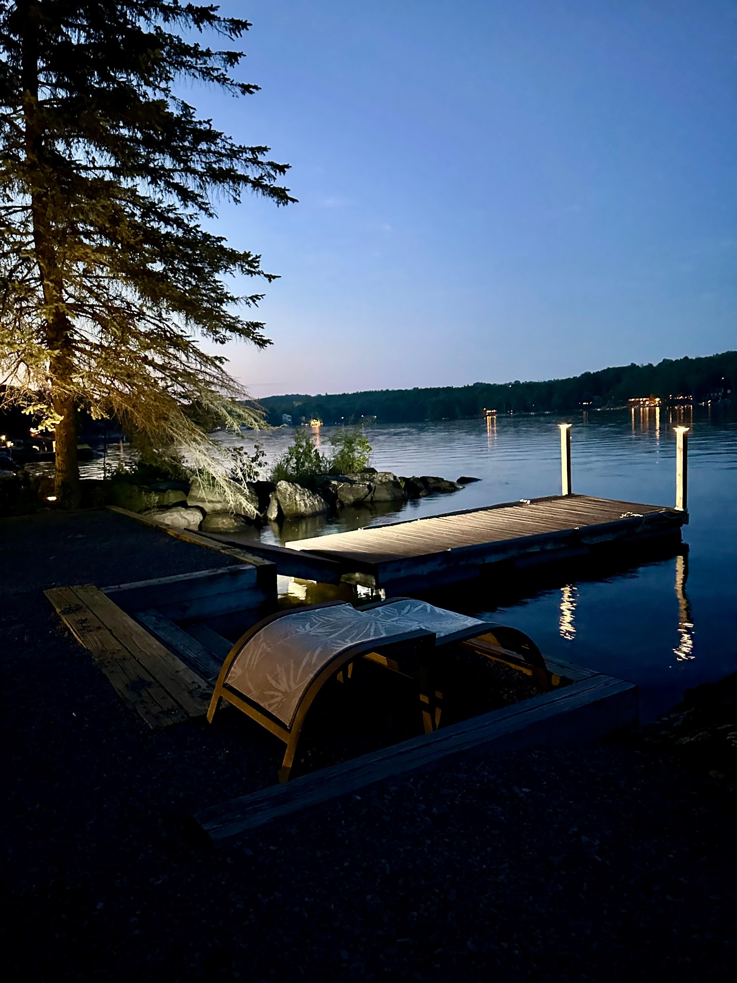 Sunrise Chalet has everything you’re looking for in a Poconos getaway. You can enjoy spectacular lake views from the great room with its soaring knotty pine cathedral ceiling or from the expansive porches (both screened-in and open). Relax in front of the dramatic floor-to-ceiling stone propane gas fireplace in the great room. Take one of the kayaks out on the lake or roast marshmallows at the dockside fire pit. Have a zen moment with the provided yoga mats and accessories, or go downstairs to the game room and try your luck on the four stand-up arcade units or fully loaded classic Nintendo game area. Or, do some bird watching. Keep an eye out for the bald eagle that likes to roost in the tall trees by our dock!