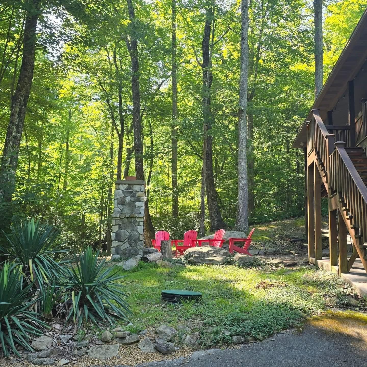 Guests can sit outside on the rocking chairs and gaze out at the splendor of the mountains and listen to the sounds of nature. After dinner is over and dishes are put in the dishwasher, enjoy the hot tub.