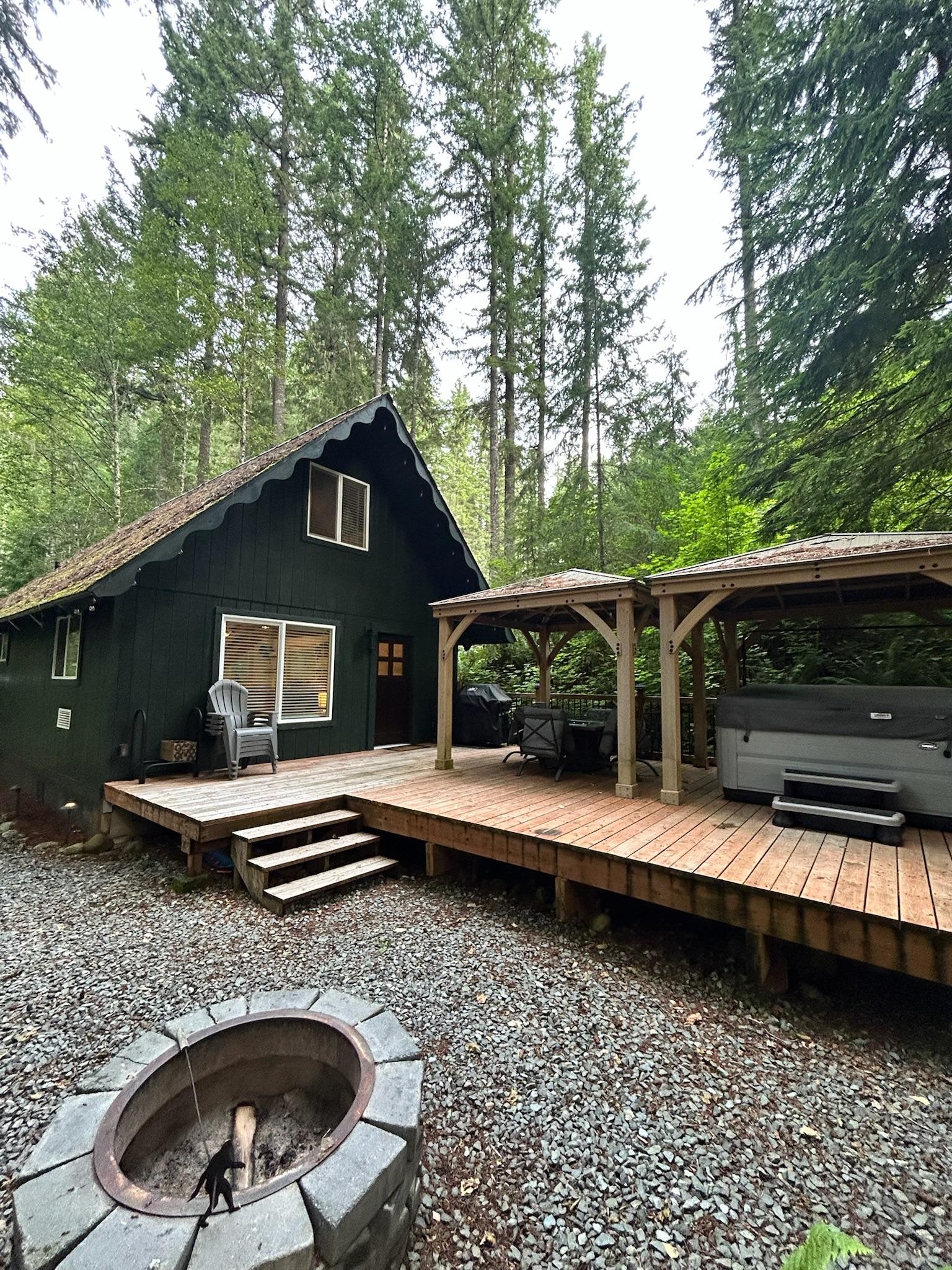 The mountains are calling! Escape to Wit's End Retreat. Close proximity to Elbe, 92 Road, Alder Lake, and only 11 minutes to Mt. Rainier National Park. This remodeled cabin features all of the creature comforts of home but is located in a quiet, peaceful setting. Property features a brand new, covered hot tub, full kitchen, WiFi, W/D, smart TV, covered outdoor seating, fire pit, and more. Wit's End Retreat is the perfect place to explore the PNW or simply stay in, relax, and recharge.