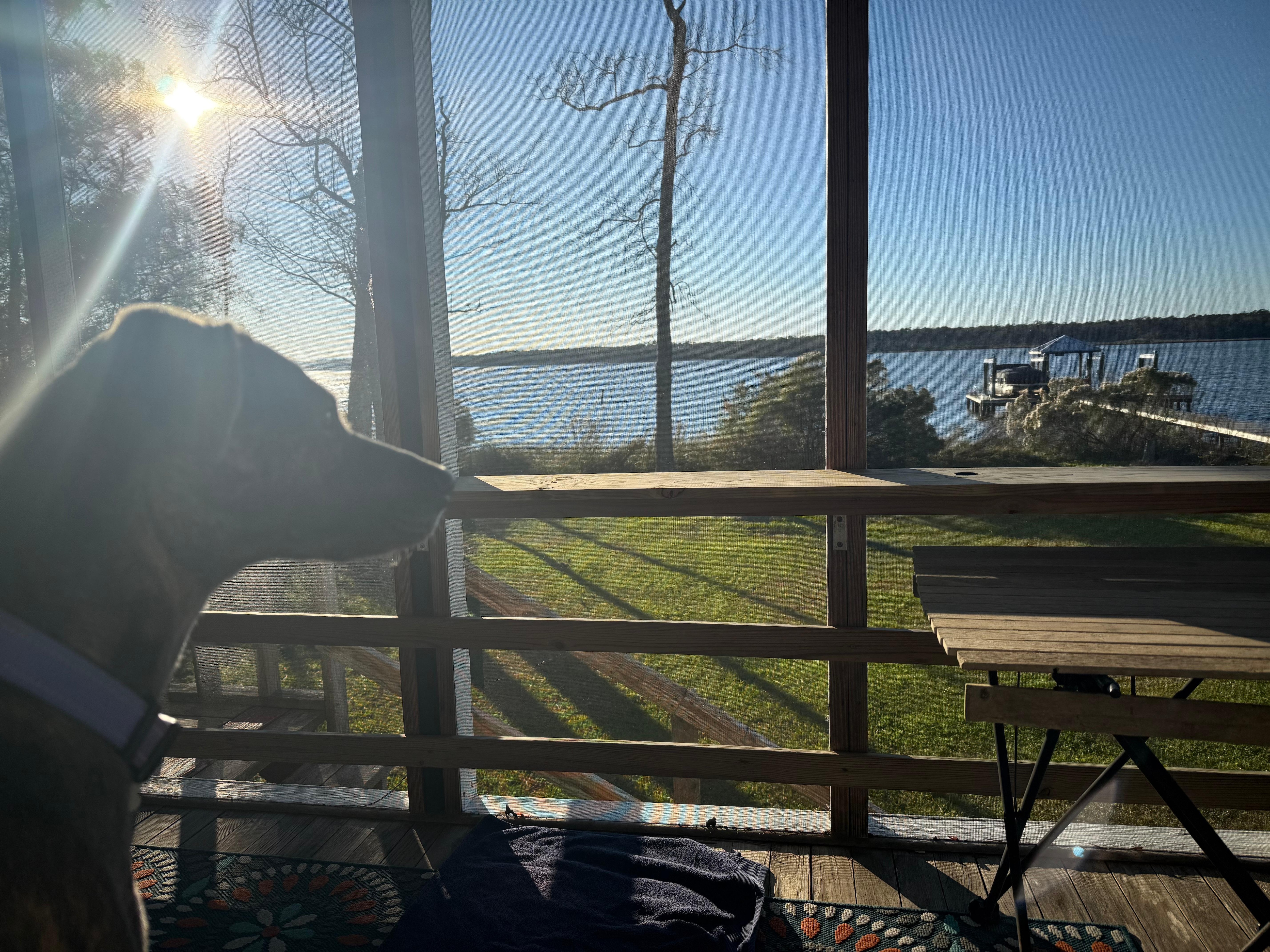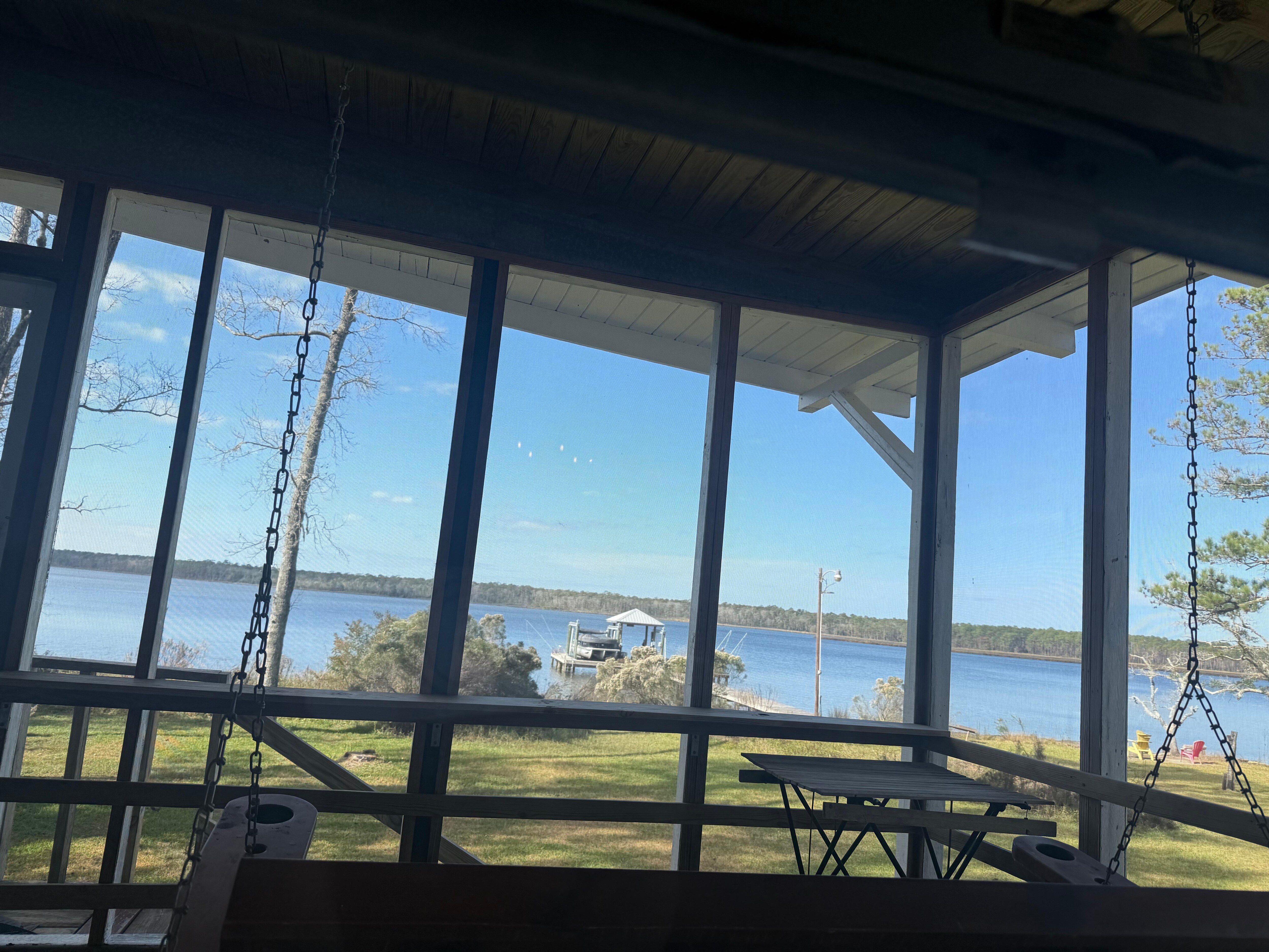 Peaceful retreat on the bay. The screened in porch on the back has a comfortable porch swing and beautiful views. We really enjoyed fishing off of the dock. The bed was incredibly comfortable. The living area was also comfortable. It’s not fancy but it has everything you need for a relaxing stay.