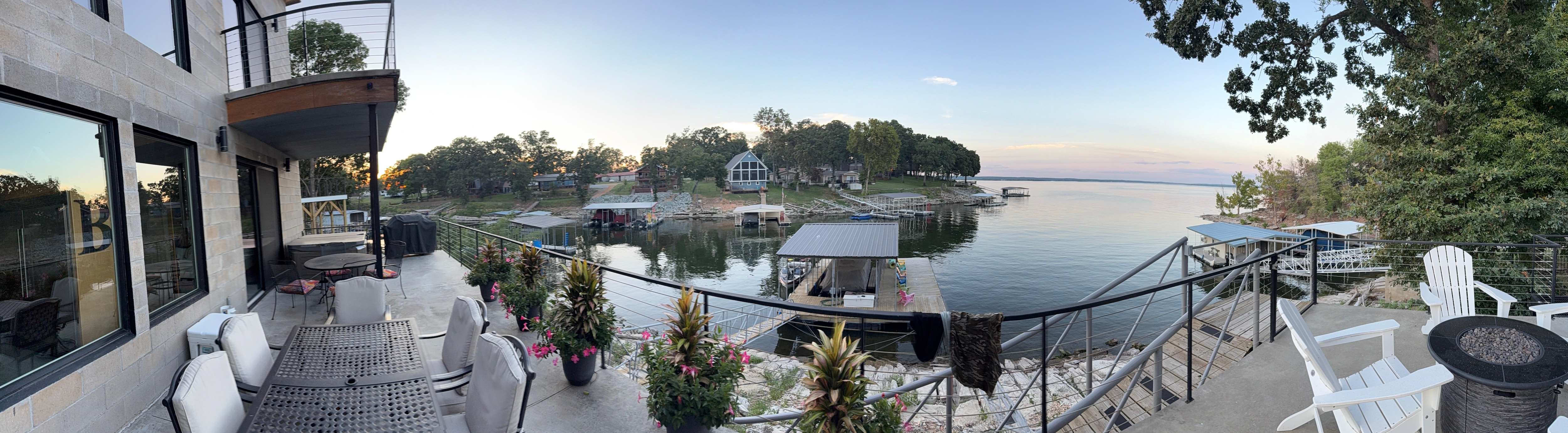 We had a group of 10 celebrating a reunion weekend. The location was perfect for being close to ShangriLa. The house was gorgeous and was large enough for everyone to have their own space with all the luxuries of a hotel. We loved the outdoor deck area where we spent most of our time which included more than enough chairs, a jacuzzi and boating dock with plenty of chairs and noodles for all. The cove was beautiful with a scenic view of the lake and perfect for floating. We definitely plan to return next summer!
